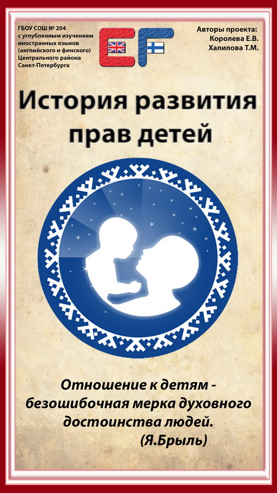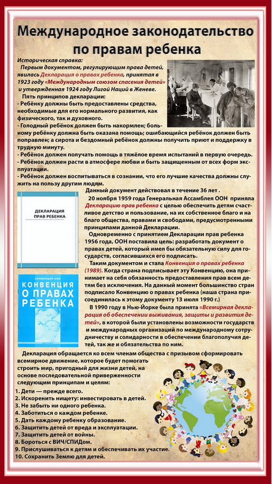 На протяжении всей человеческой истории, права ребенка поддавались изменениям. В зависимости от влияния религии, идеологий, развития нравственности и морали, менялось и отношение к детям, их место в семье и в обществе. Поэтому, чем раньше дети осознают свои законные права и обязанности, тем выше их уровень социальной защищенности.