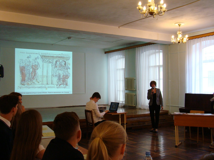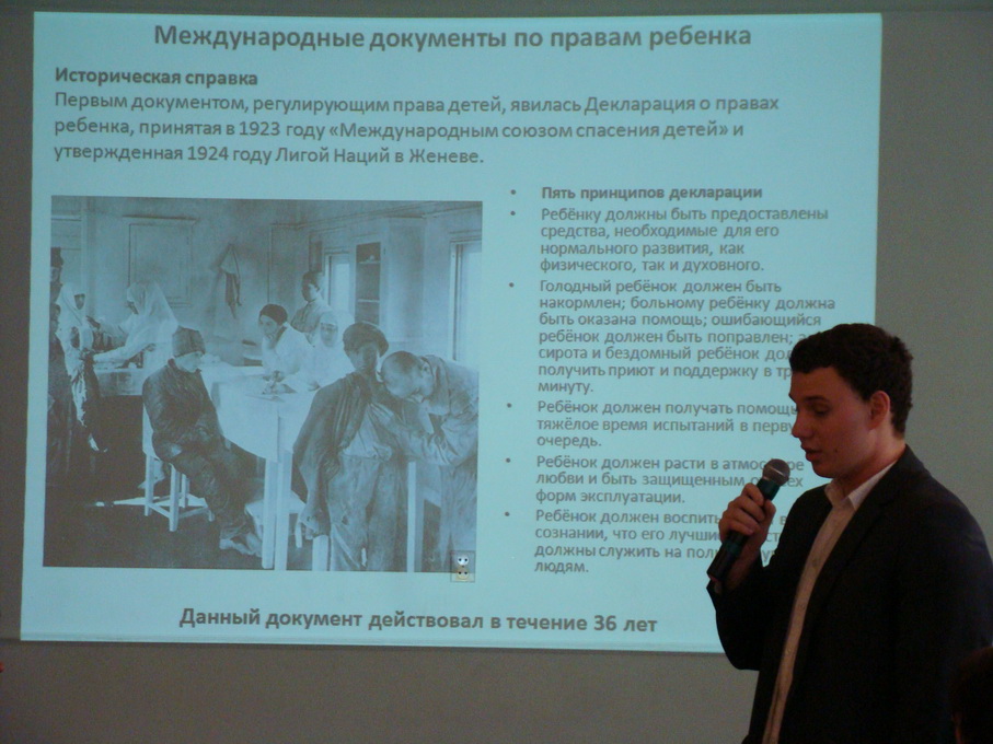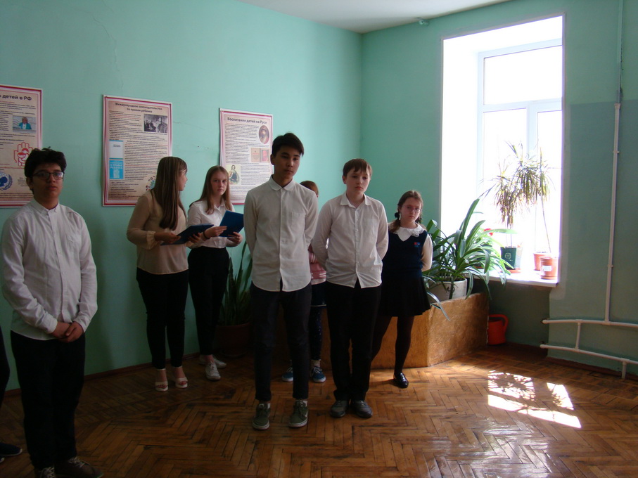 Во время проведения мероприятия Татьяна Михайловна вместе с ребятами 10 А класса провела экскурсию для учащихся 6-х классов. Ребята рассказали шестиклассникам как развивались права ребенка на разных этапах развития нашей страны, познакомили ребят с нормативно-правовыми документами.