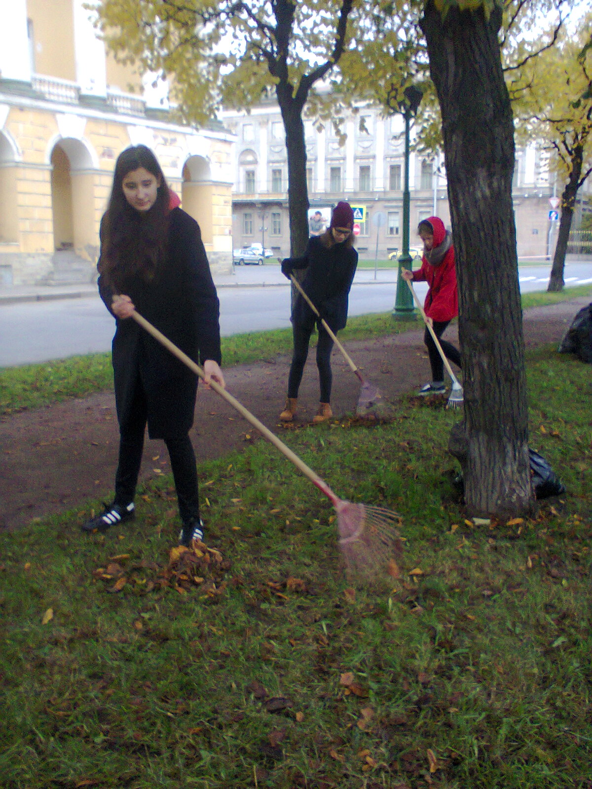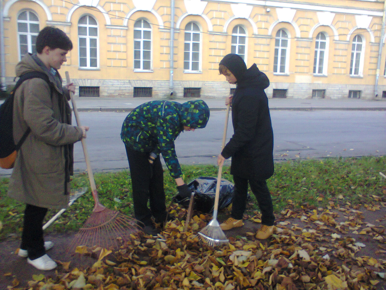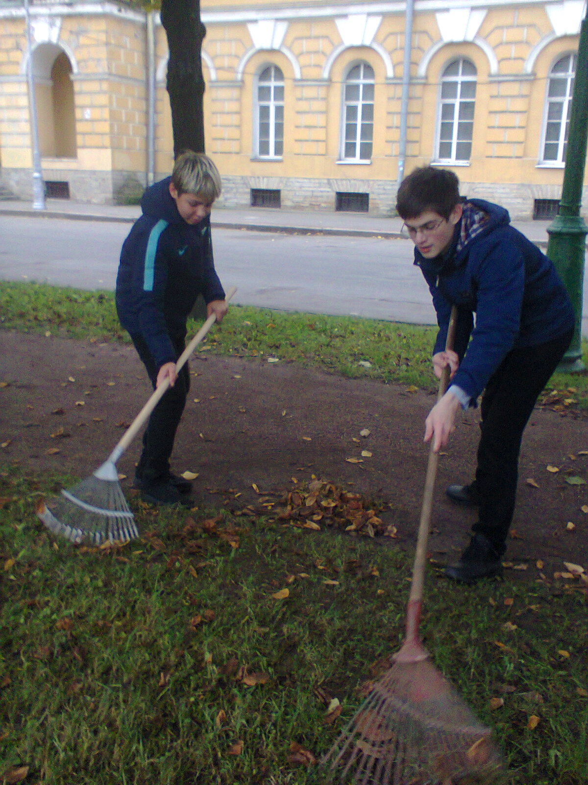 21 октября учащиеся 8 и 10 классов приняли участие в Дне благоустройства нашего города. Ребята активно потрудились на Марсовом поле, они убирали листья и мусор с аллей и газонов.