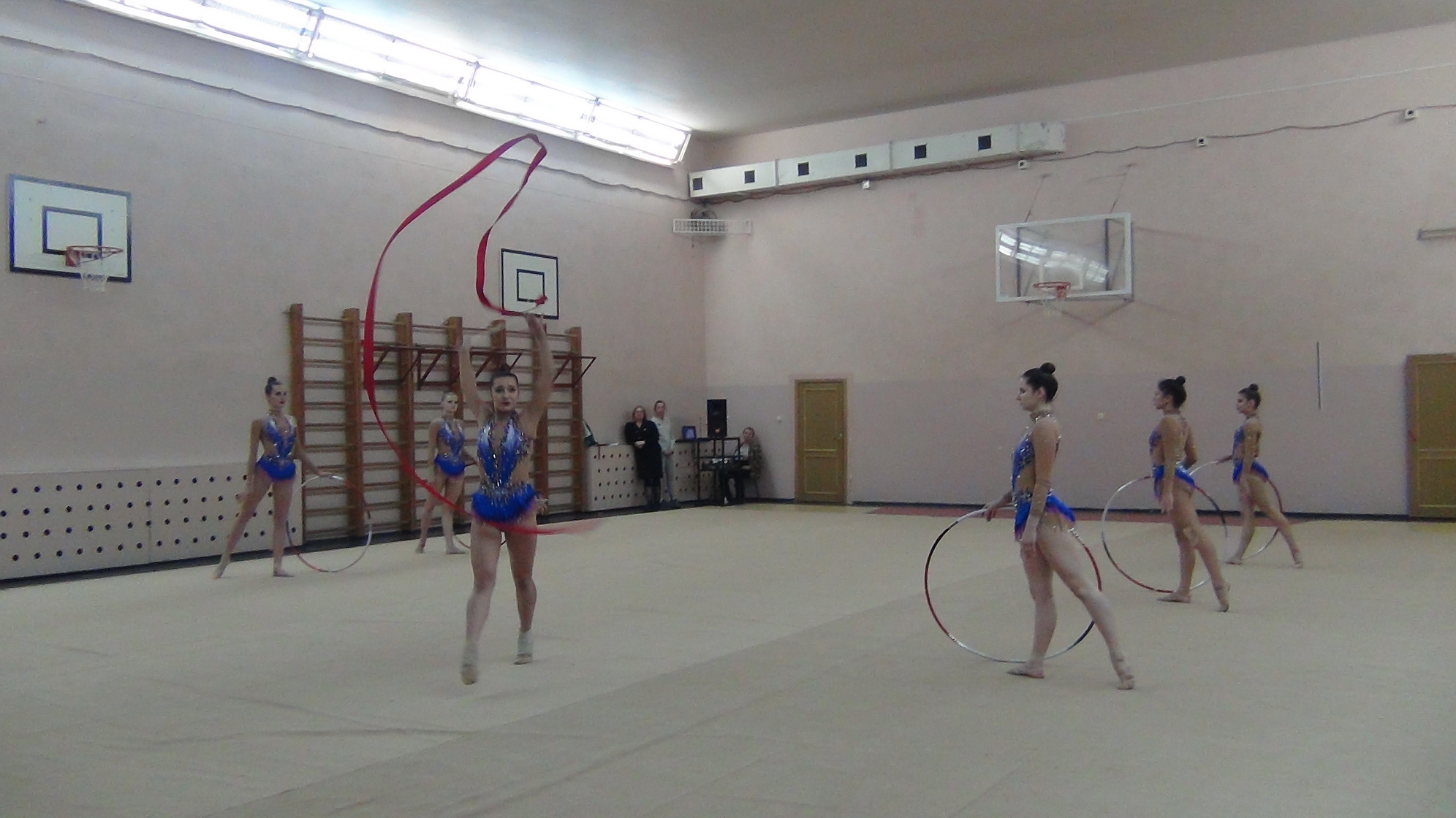 Дружными аплодисментами учащиеся приветствовали спортсменов. Здесь студенты продемонстрировали свое мастерство в художественной гимнастике.