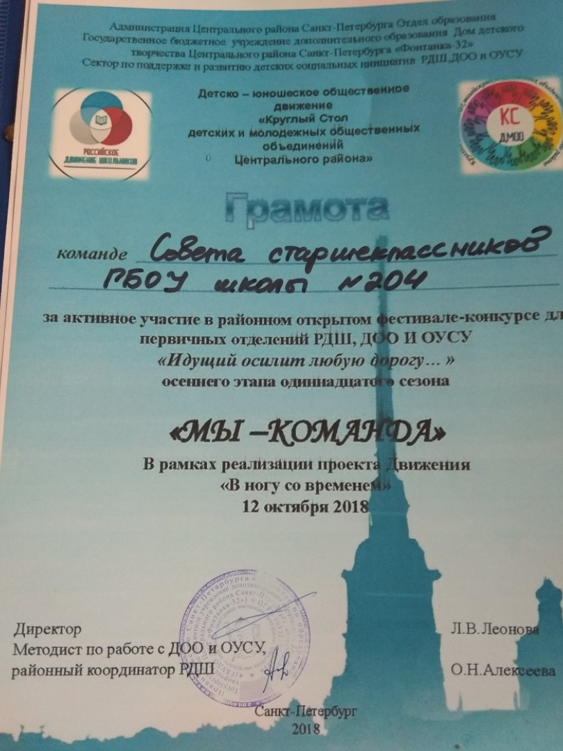 12 октября состоялся конкурс ученических самоуправлений в ДДТЮ "Фонтанка-32" "Идущий осилит любую дорогу"