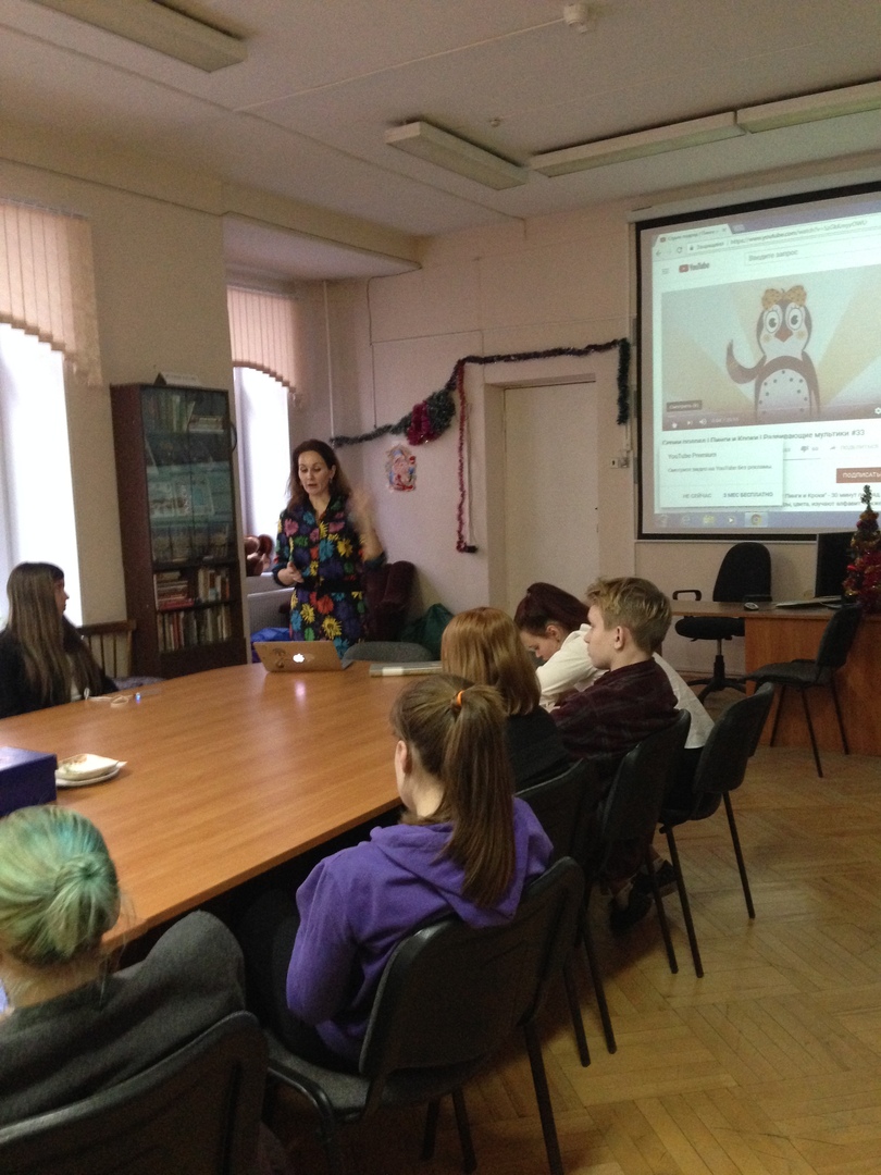 Инга Воск провела в школе 4 часа. Сначала встреча со 2-м классом, потом в Библиотеке - с 11-м классом и активом школы. В 14.30 мы пригласили Ингу в нашу Лабораторию Визуализации мысли и речи. Появилась идея научить Пинги и Кроки финскому языку. Или даже пригласить героев сериала в нашу школу.