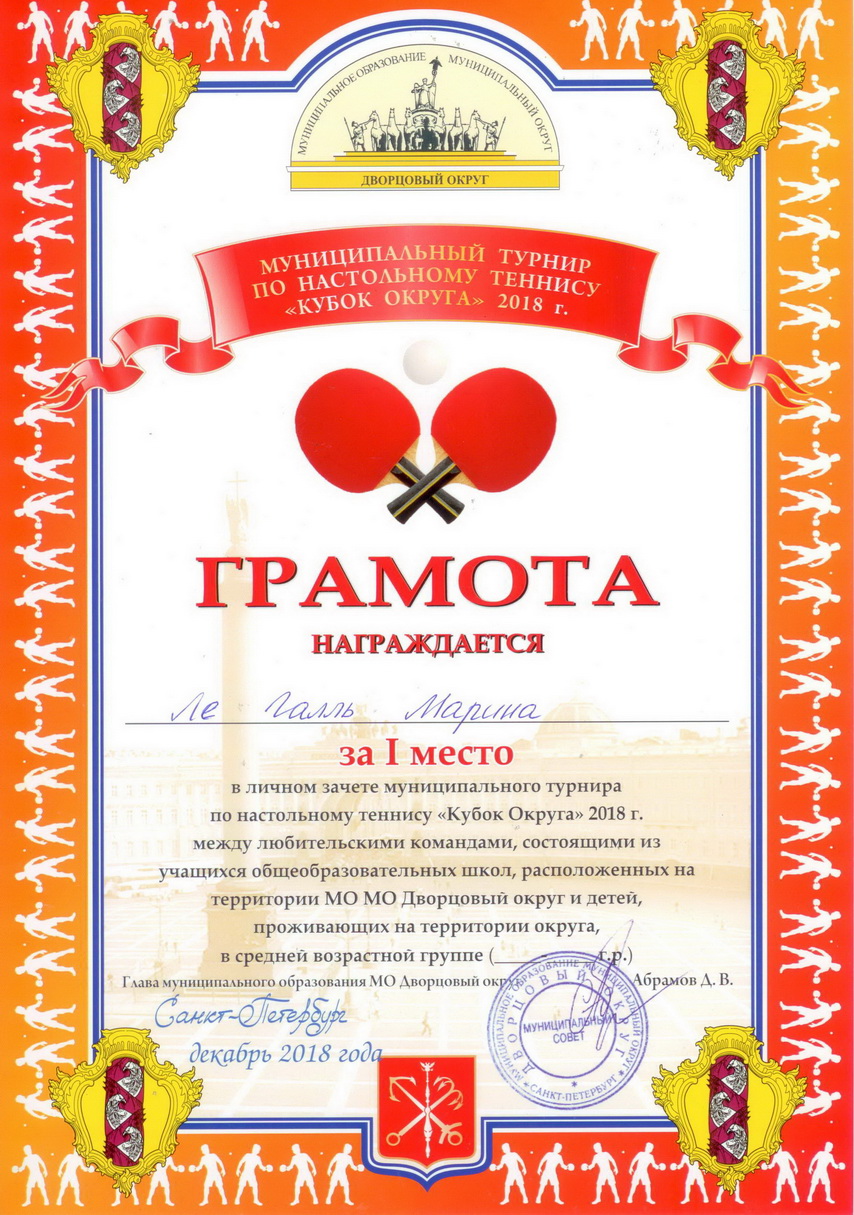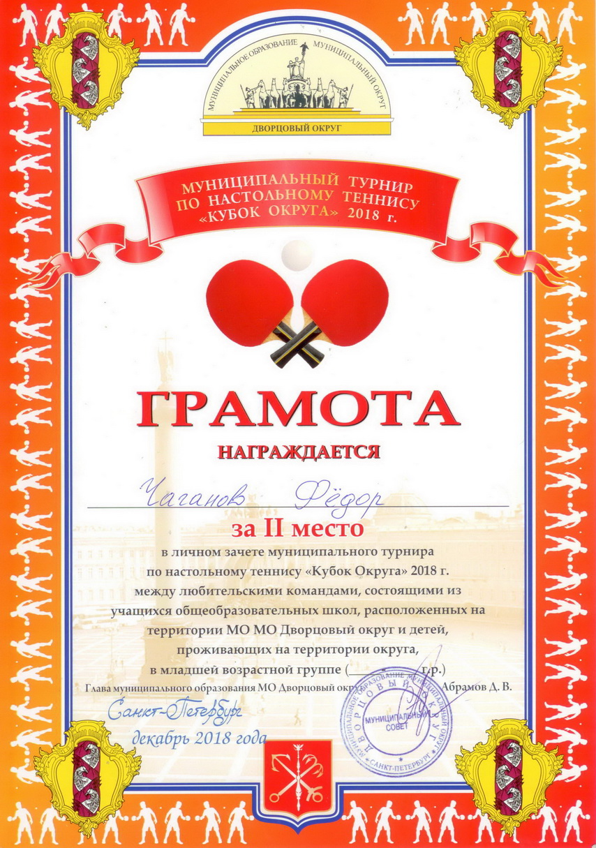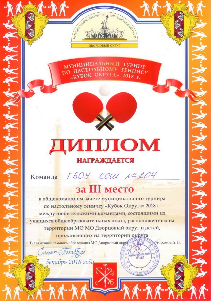 12-13 декабря состоялись Муниципальные соревнования по настольному теннису «Кубок округа – 2018», организованные МО Дворцовый округ.