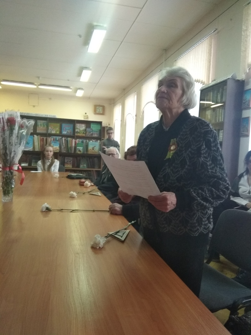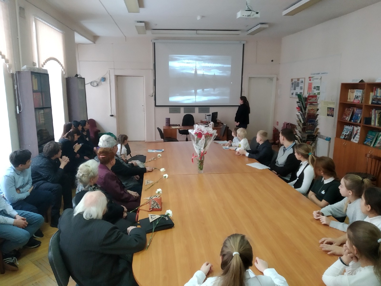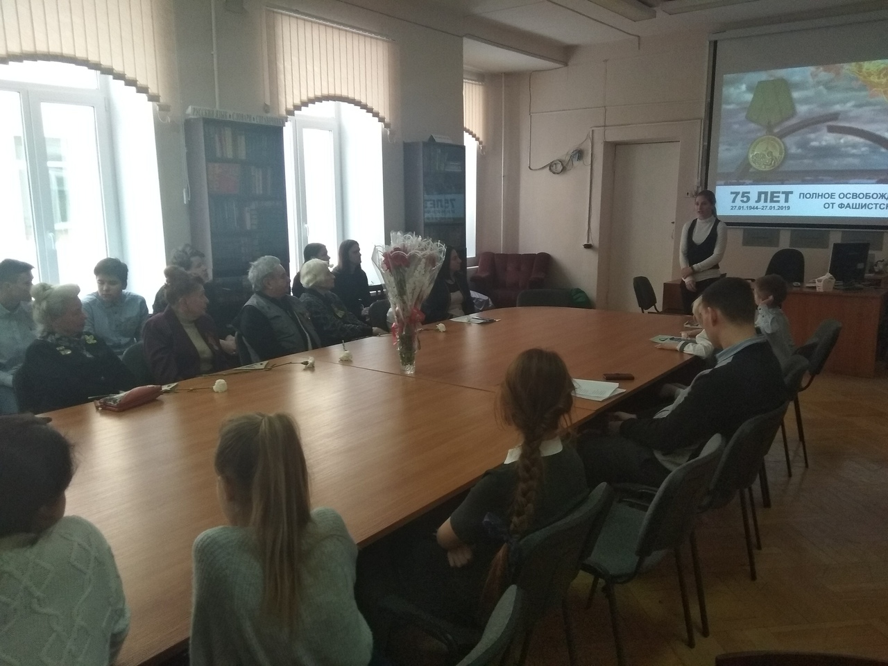 К нам в гости пришли ветераны, рассказали о жизни в блокадном Ленинграде. Дети из детского сада №109 поздравили ветеранов, прочитали стихи. Ребята школы показали документальный фильм, прочитали стихи собственного сочинения, задали свои вопросы.