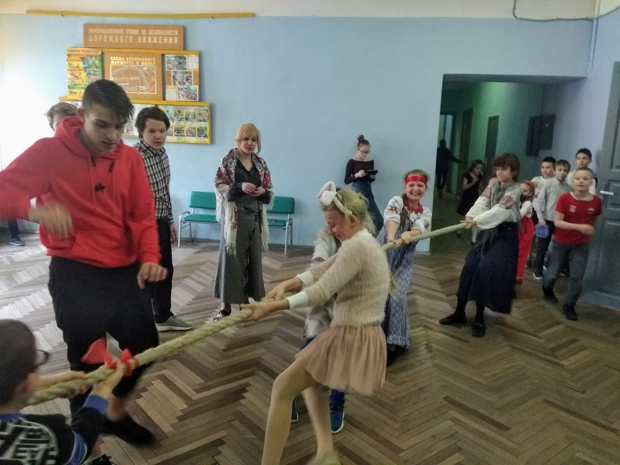 Ребята из 8 класса подготовили для учащихся веселые игры, загадки и традиционные масленичные соревнования по перетягиванию каната.
