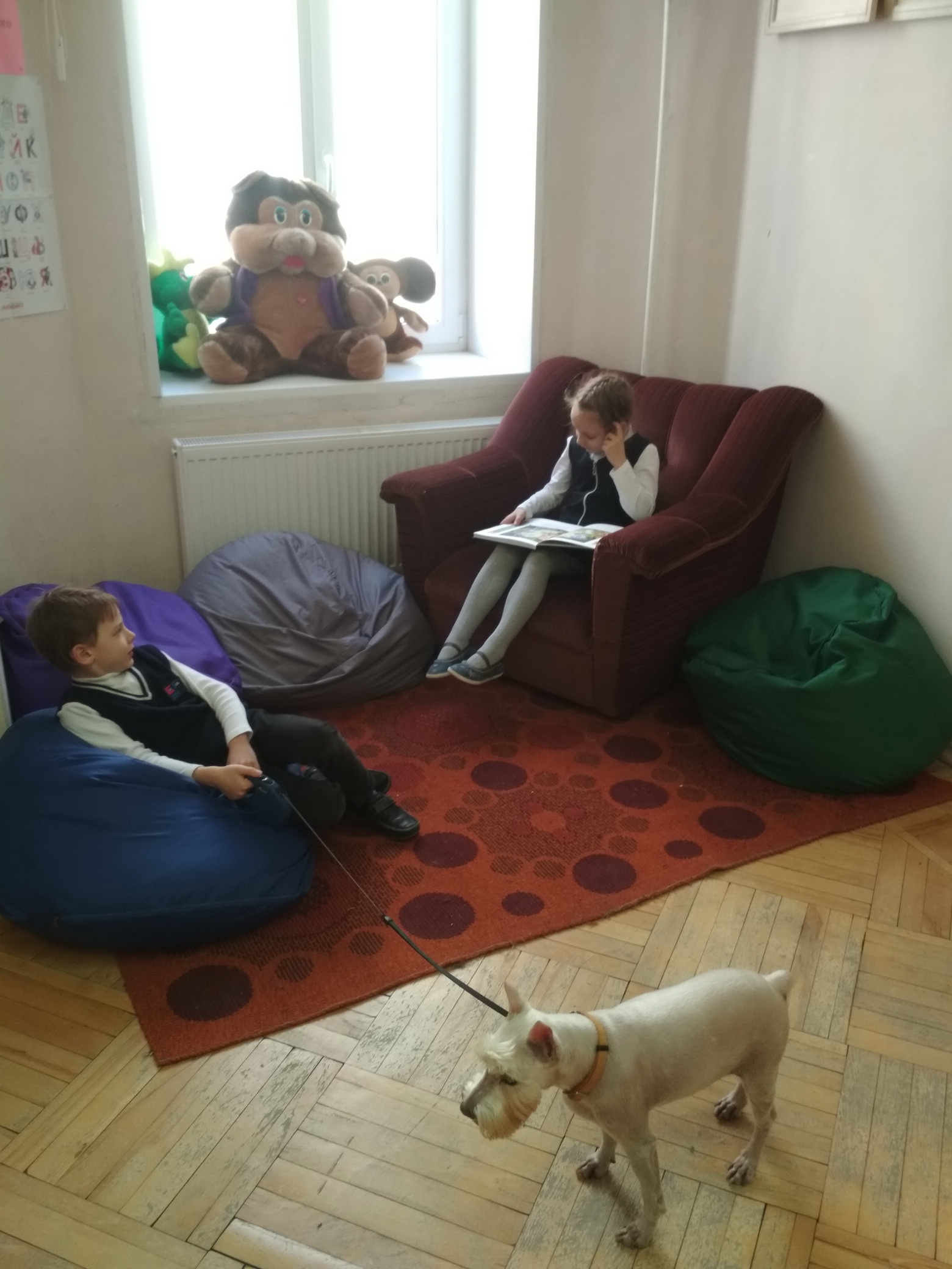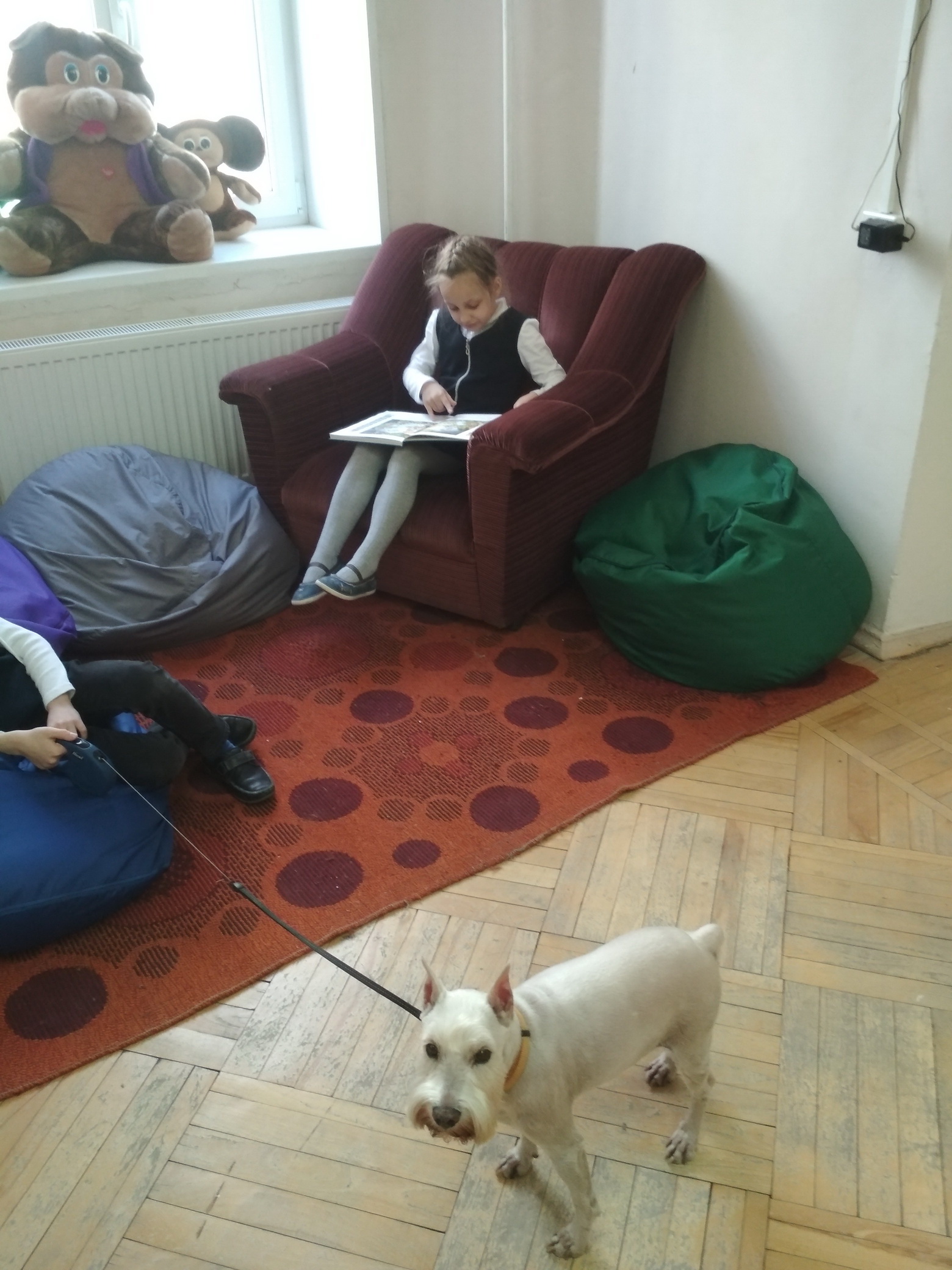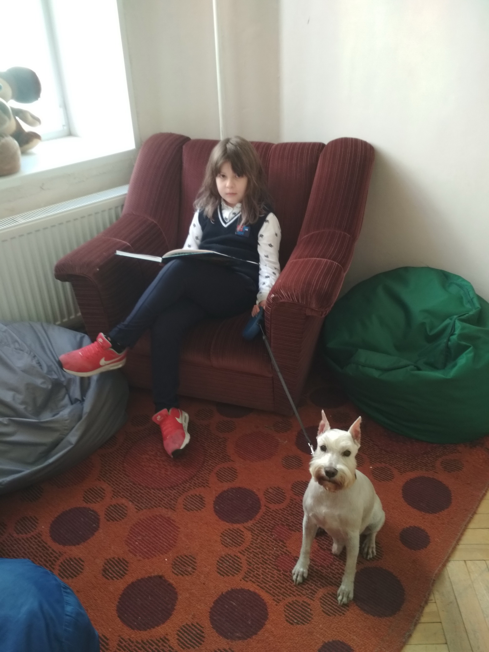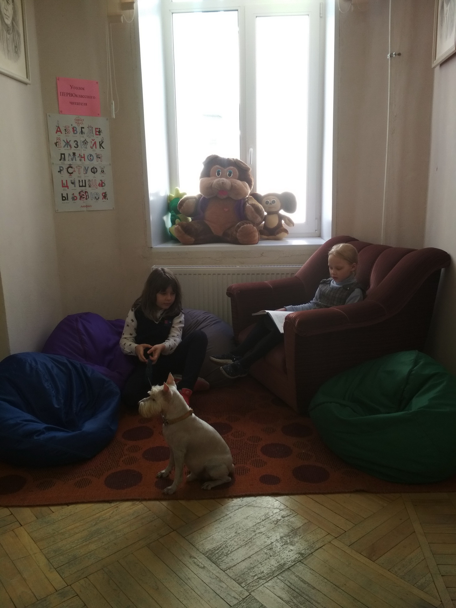 Закончились холода, выглянуло солнце, и к нам в школу опять пришла собачка по имени Бай Ди. Дети очень соскучились по ней. В этот раз собачке читали первоклашки. Надеемся, что наши встречи будут регулярны. Ребята уже научились читать и ждут встречи с собачкой.