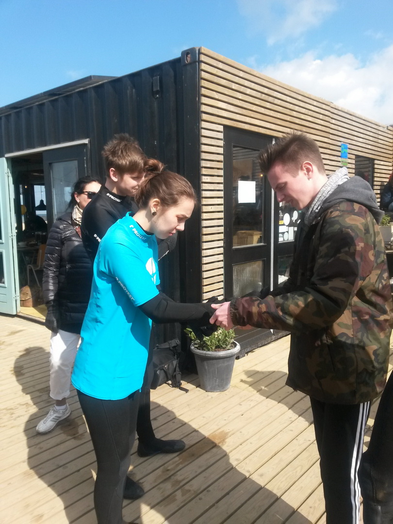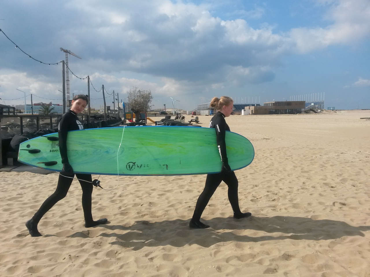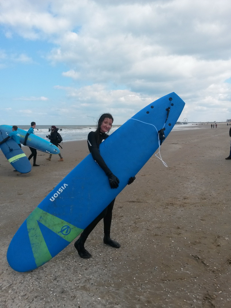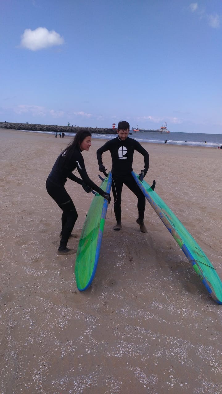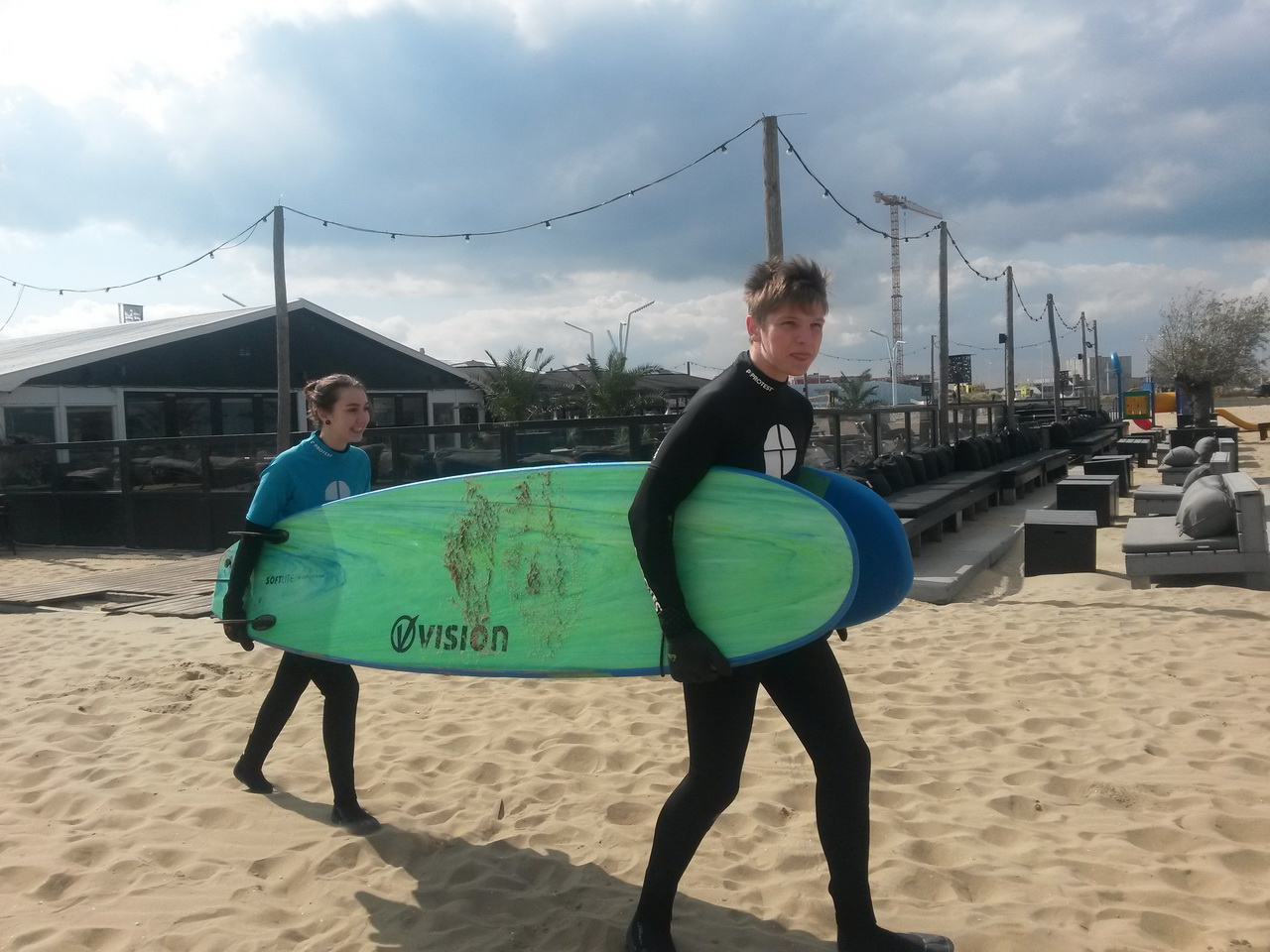 Вечером культурная программа сменилась развлекательным событием! Нас ждала дискотека в лицее Монтессори, на которой присутствовала вся школа. Светомузыка, прекрасные диджеи, танцы и живое общение. Но в субботу по плану программы было не менее захватывающее событие: урок сёрфинга в акватории Северного моря. Несмотря на прохладную погоду спортсмены-энтузиасты с удовольствием покатались на волнах. К концу урока российские серфингисты по уровню мастерства и ловкости не уступали тренерам-профессионалам. Браво!