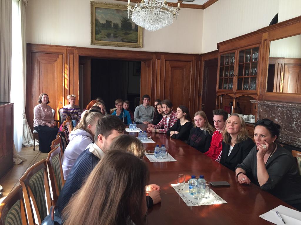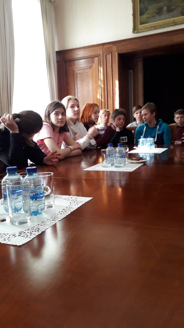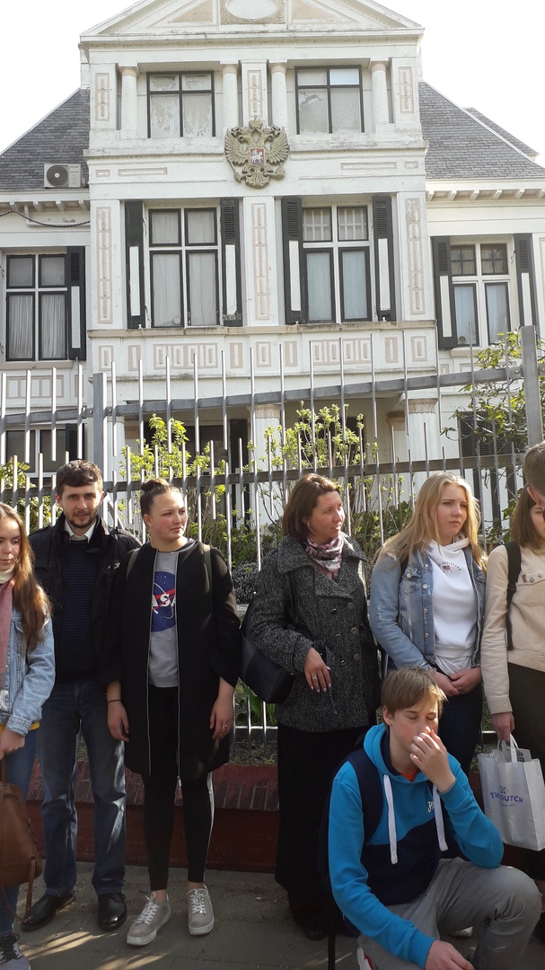16 апреля 2019 российские участники международного образовательного проекта "Мы живем и учимся в Санкт-Петербурге и Гааге в XXI веке" были приглашены в Посольство Российской Федерации. Принимающей стороне мы кратко рассказали о том, что в этом году проект отмечает юбилей - 25-летие российско-голландского сотрудничества. Основными задачами его деятельности являются знакомство с национальной культурой, историей, образованием, особенностями менталитета. В Посольстве произошёл очень продуктивный диалог о современных мировых проблемах, о жизни русской диаспоры в Нидерландах, о дальнейших планах школ-участниц проекта.