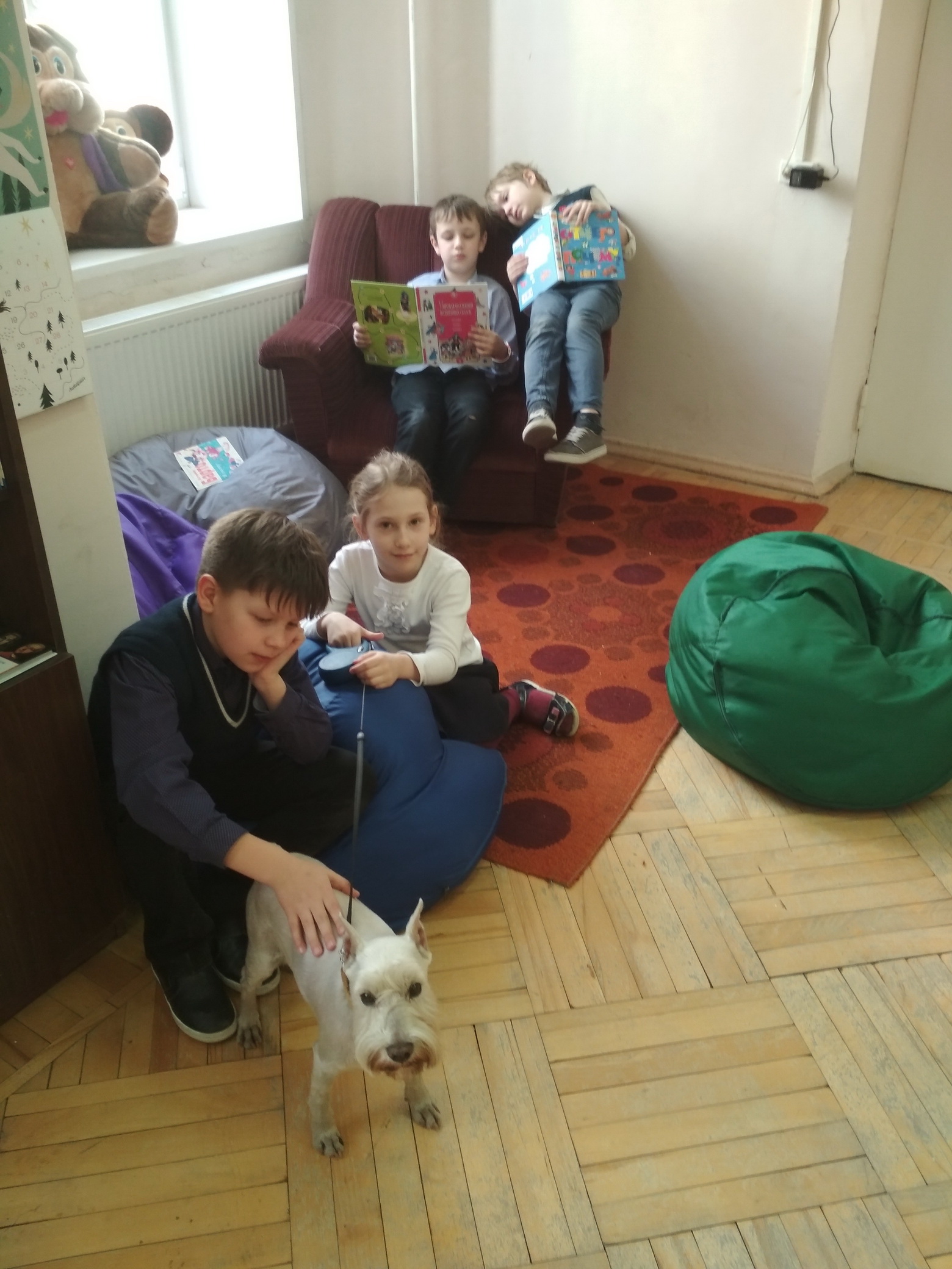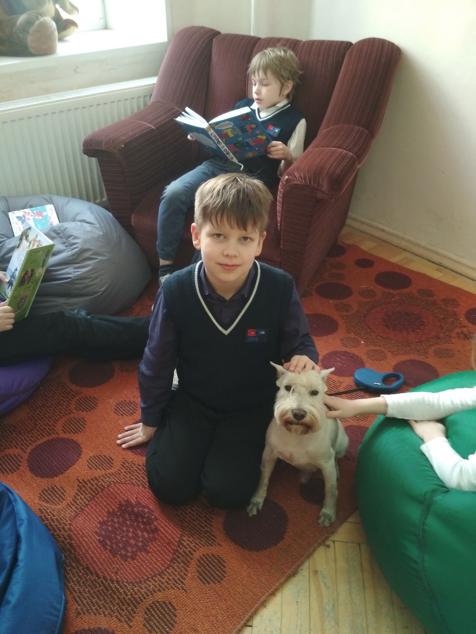 На этой неделе в нашу школу приезжали финские школьники из города Тампере, Финляндия. У них в школы тоже приходят в гости собаки, и дети читают им вслух. Сегодня с собачкой встречались учащиеся 1А класса. В этот раз наши дети читали собачке стихи Агнии Барто. Все дети замечательные и уже хорошо читают. Кроме чтения вслух они в школе посетили выступление театральной студии.