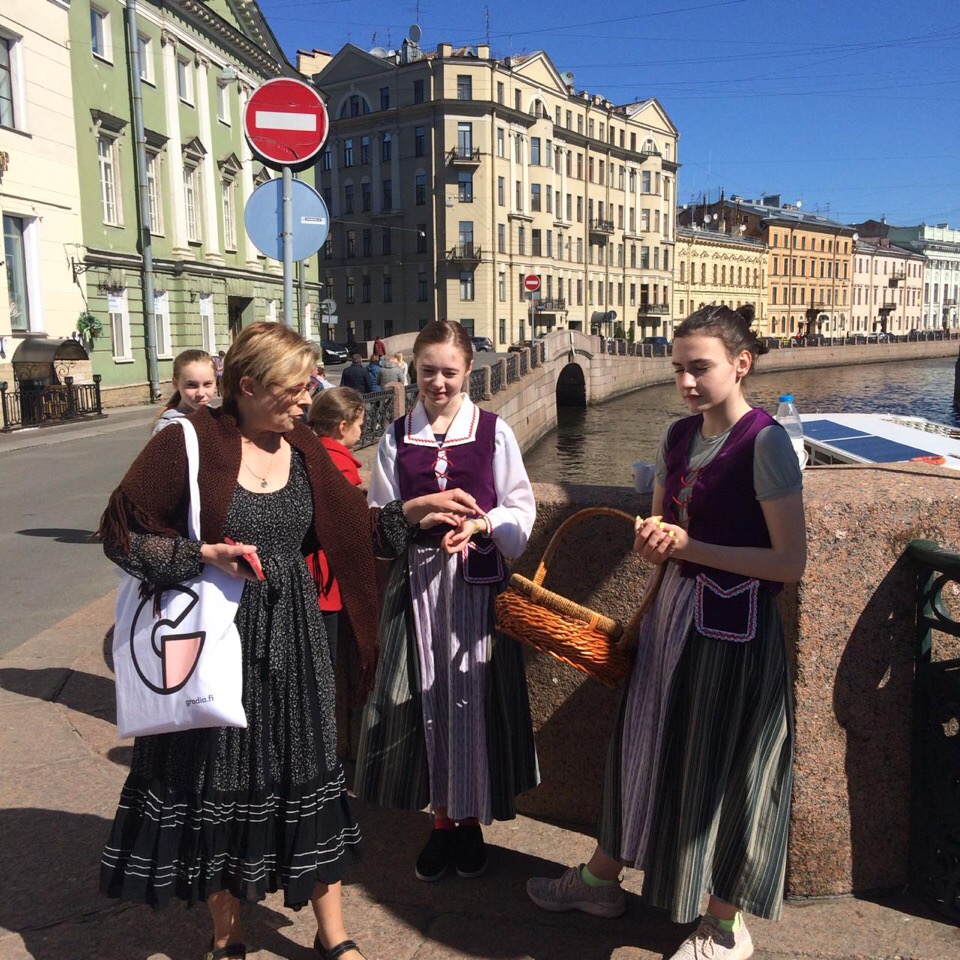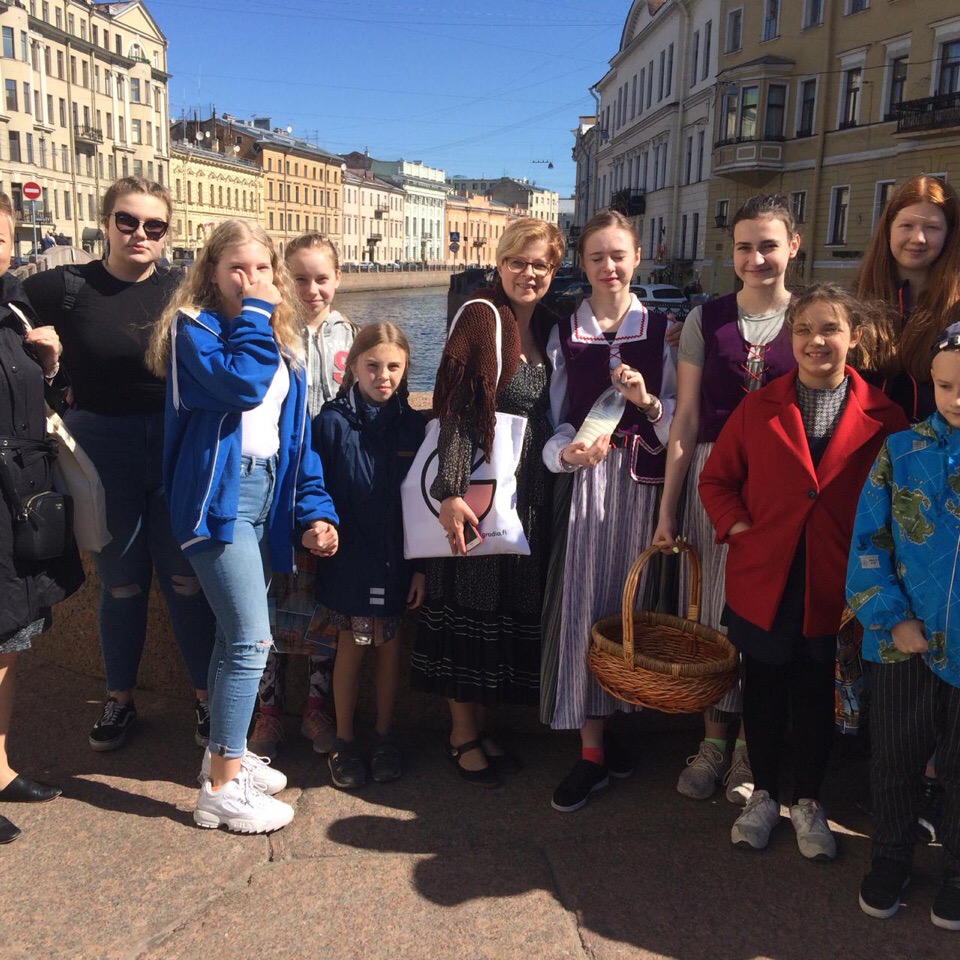 Встречали группу у Церкви Святой Марии наши учащиеся и родители. О.В.Миловидова и челны клуба «Финский Петербург» провели променад по солнечному городу.
