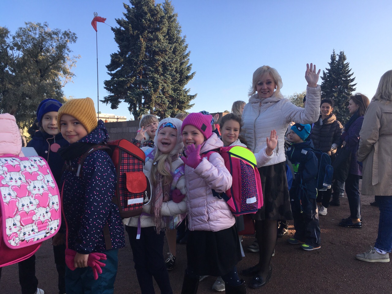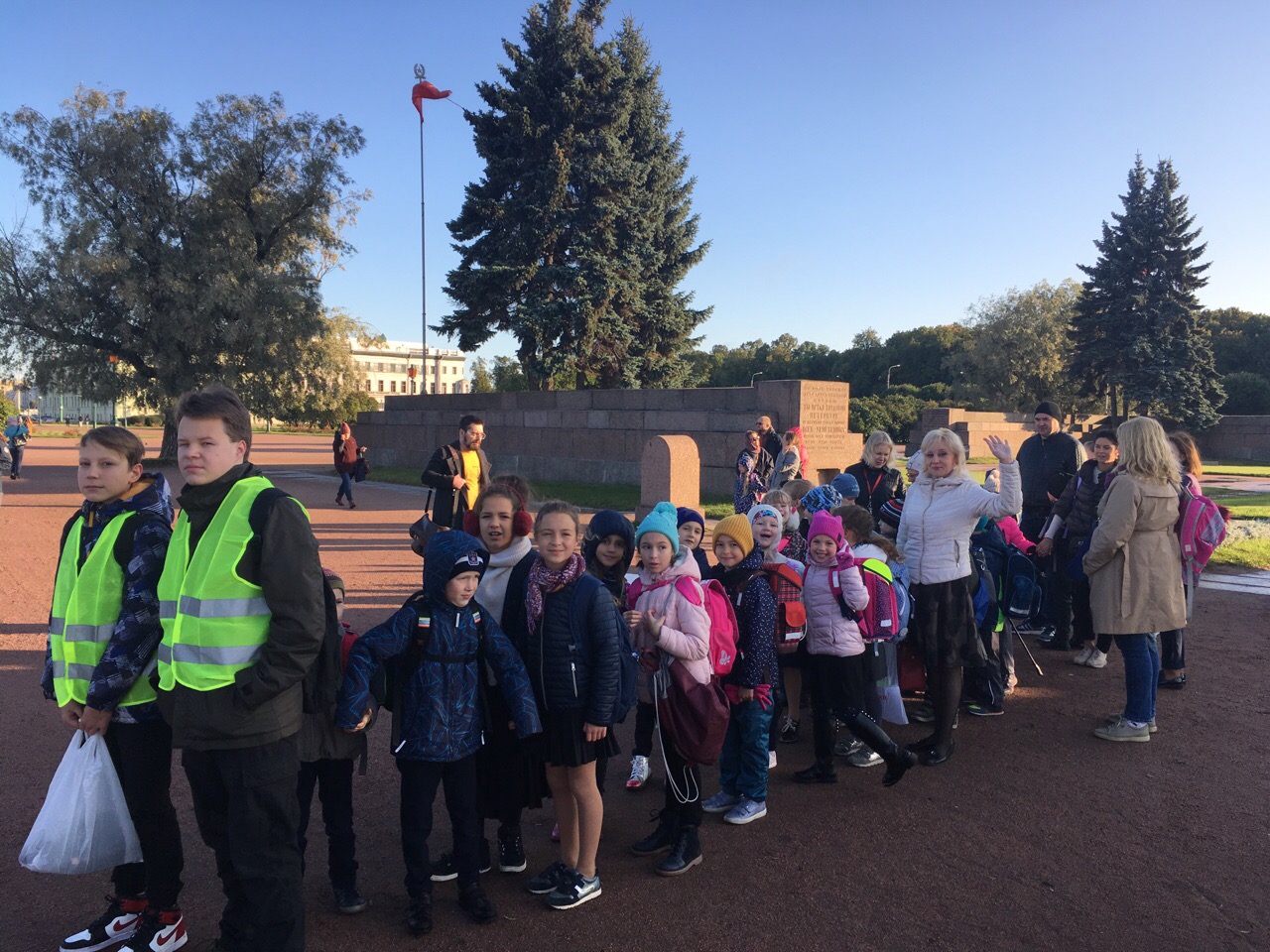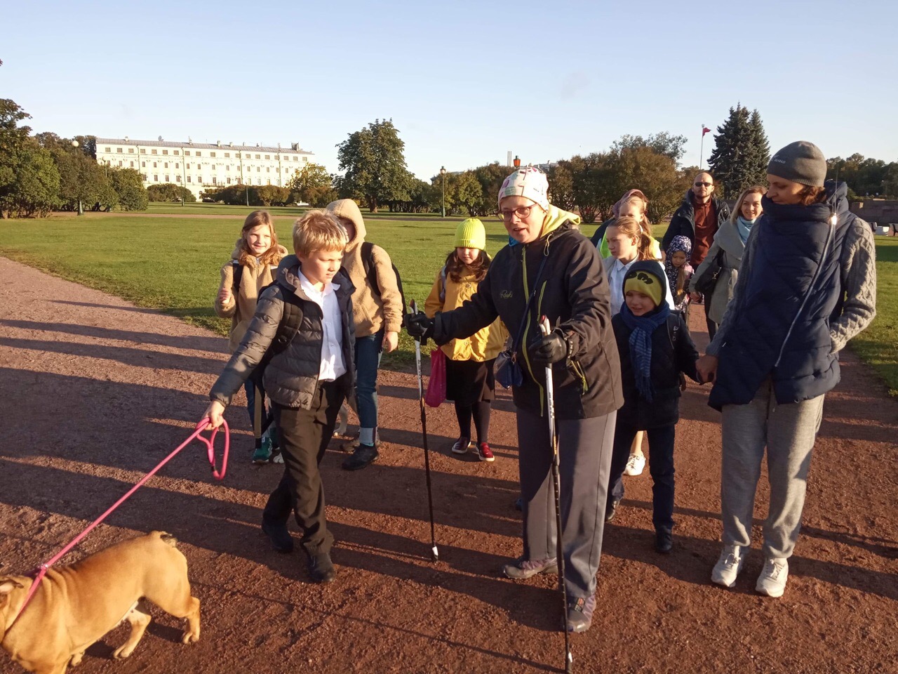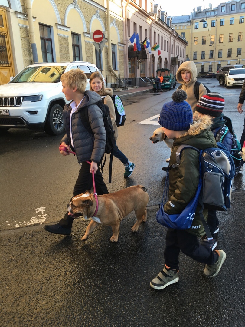 Первый пешехобус в этом году собрал большинство ребят на маршруте 2. От Марсова поля пешком в школу пошли учащиеся с 1 по 9 класс, родители, учителя и даже собаки!