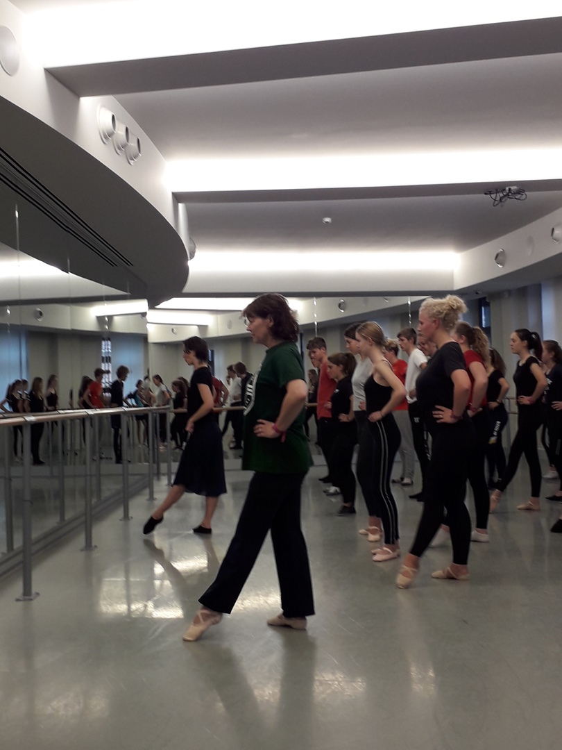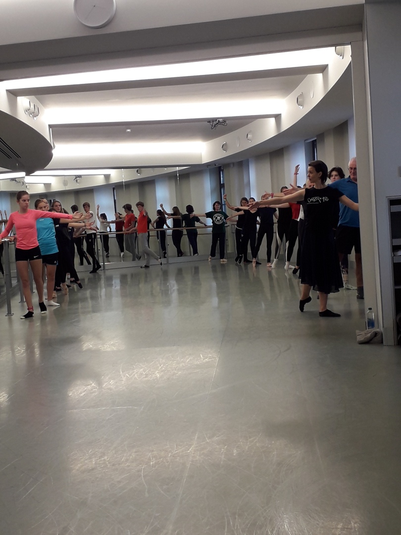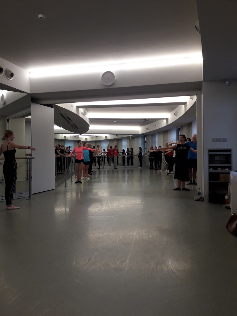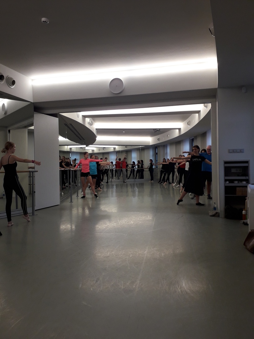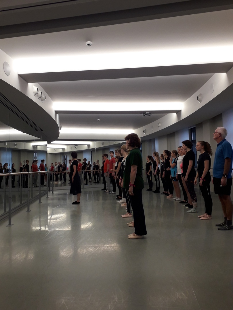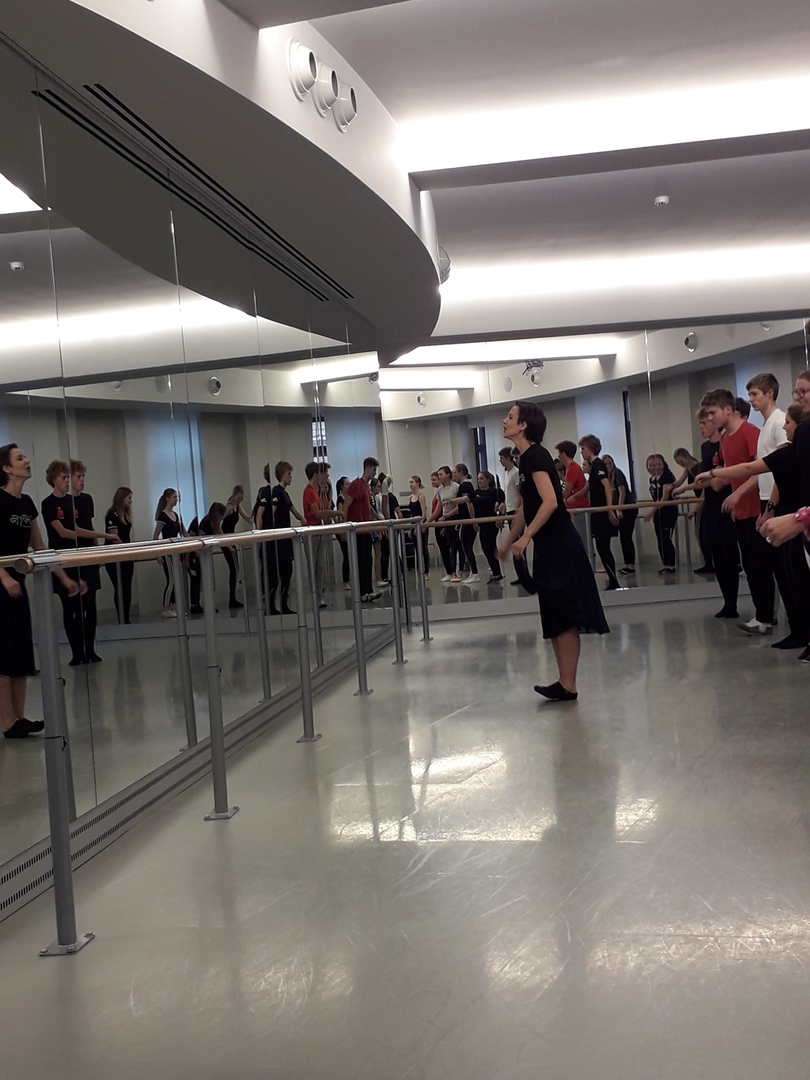 Получив теоретические знания группа отправилась на территорию Новой Голландии, где нас ждал мастеркласс в студии Примы балерины российского балета Дианы Вишнёвой. Мы гордимся тем фактом, что нам удалось решить все сложные моменты и организовать практический урок. Все ученики Монтессори и их учителя в полном составе встали у балетных станков. Час занятий — и уже можно выделить группу, которая имеет неплохие шансы для реализации себя в балетном искусстве!
