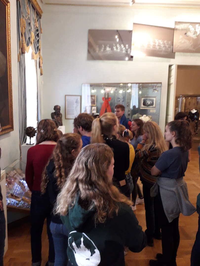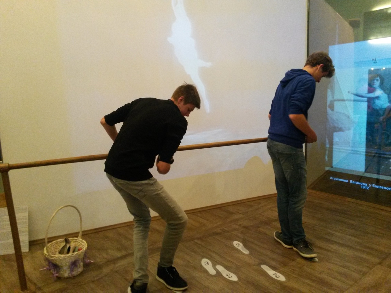 Далее по плану нашей сегодняшней программы – визит в Музей Театрального искусства. Впервые удалось организовать посещение этого интереснейшего места, которое я лично рекомендую к посещению всем классным руководителям и любителям русского сценического искусства. Музей интерактивный, у посетителей была возможность попробовать силы у балетного станка под видео-руководством Николая Цискаридзе.