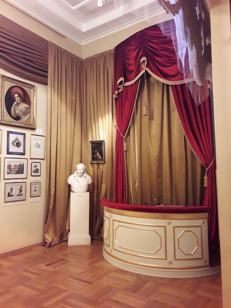 Театральный музей располагается в здании бывшей Дирекции императорских театров (арх. Карл Росси). Его экспозиция посвящена истории российского и мирового театра.