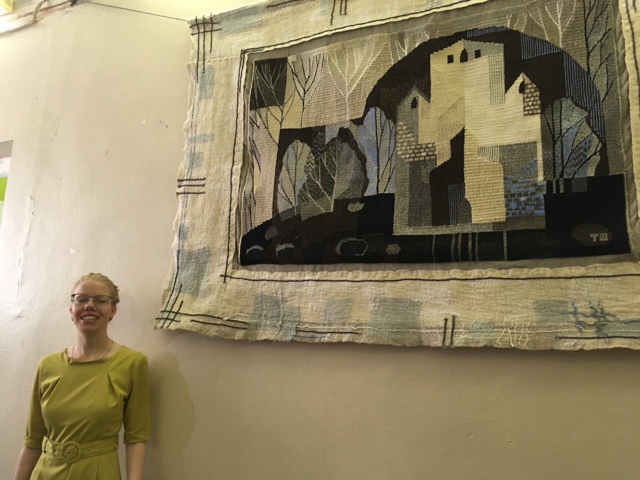 Гобелен «Финский замок» Татьяна Шалыгина создавала специально для интерьера школы. Это ее дипломная работа прошлого года, которая перешла в дар школе.