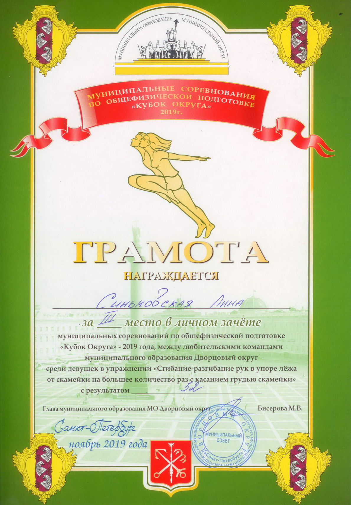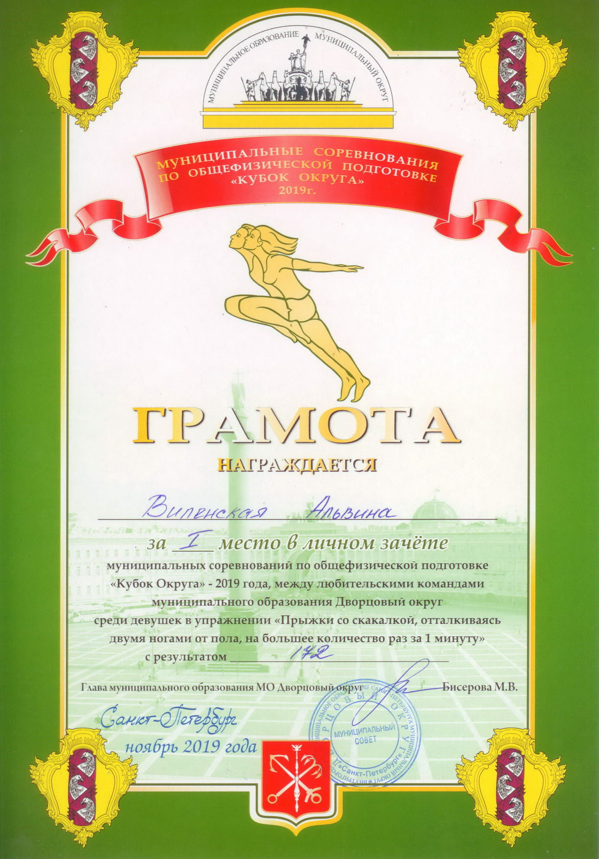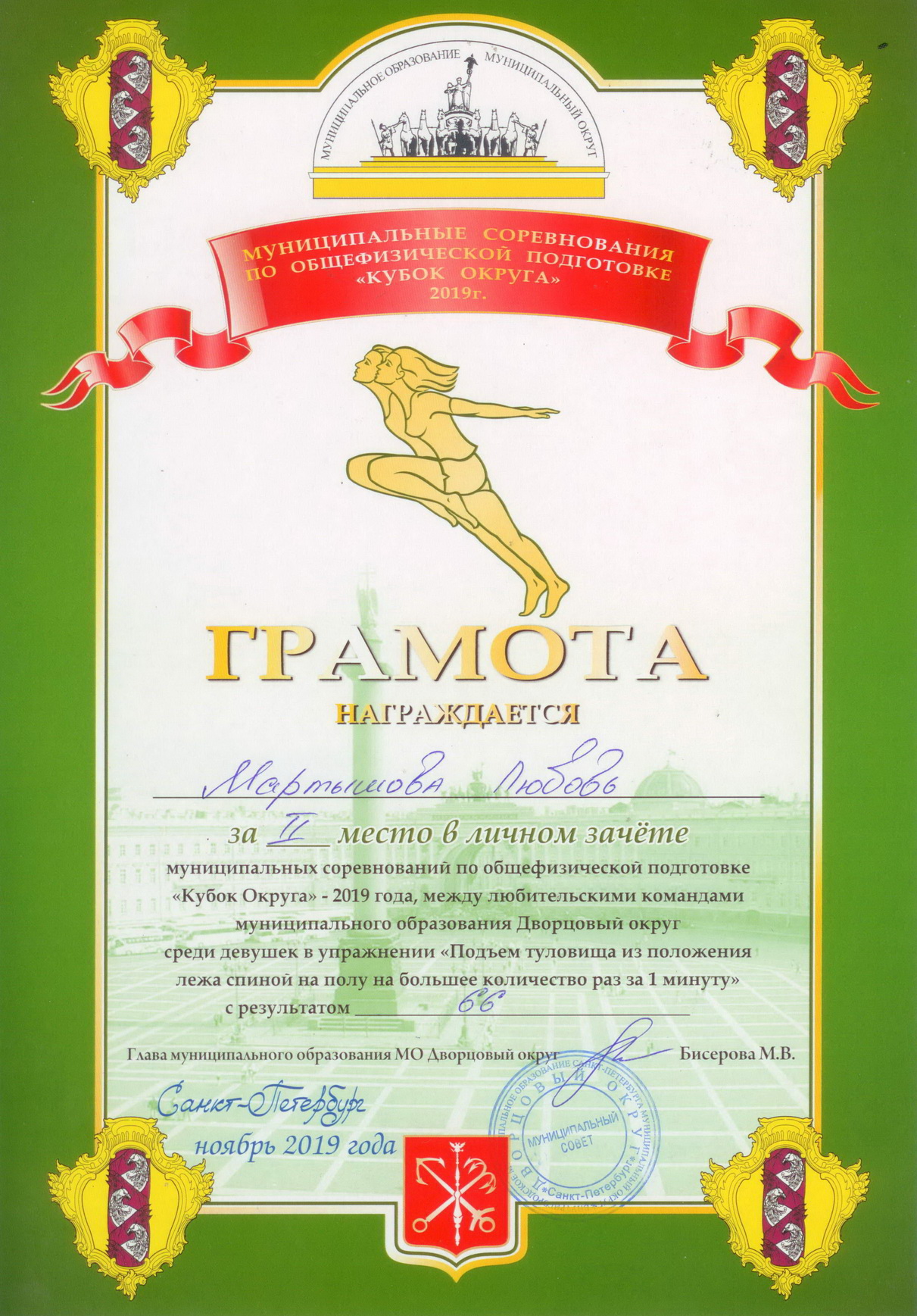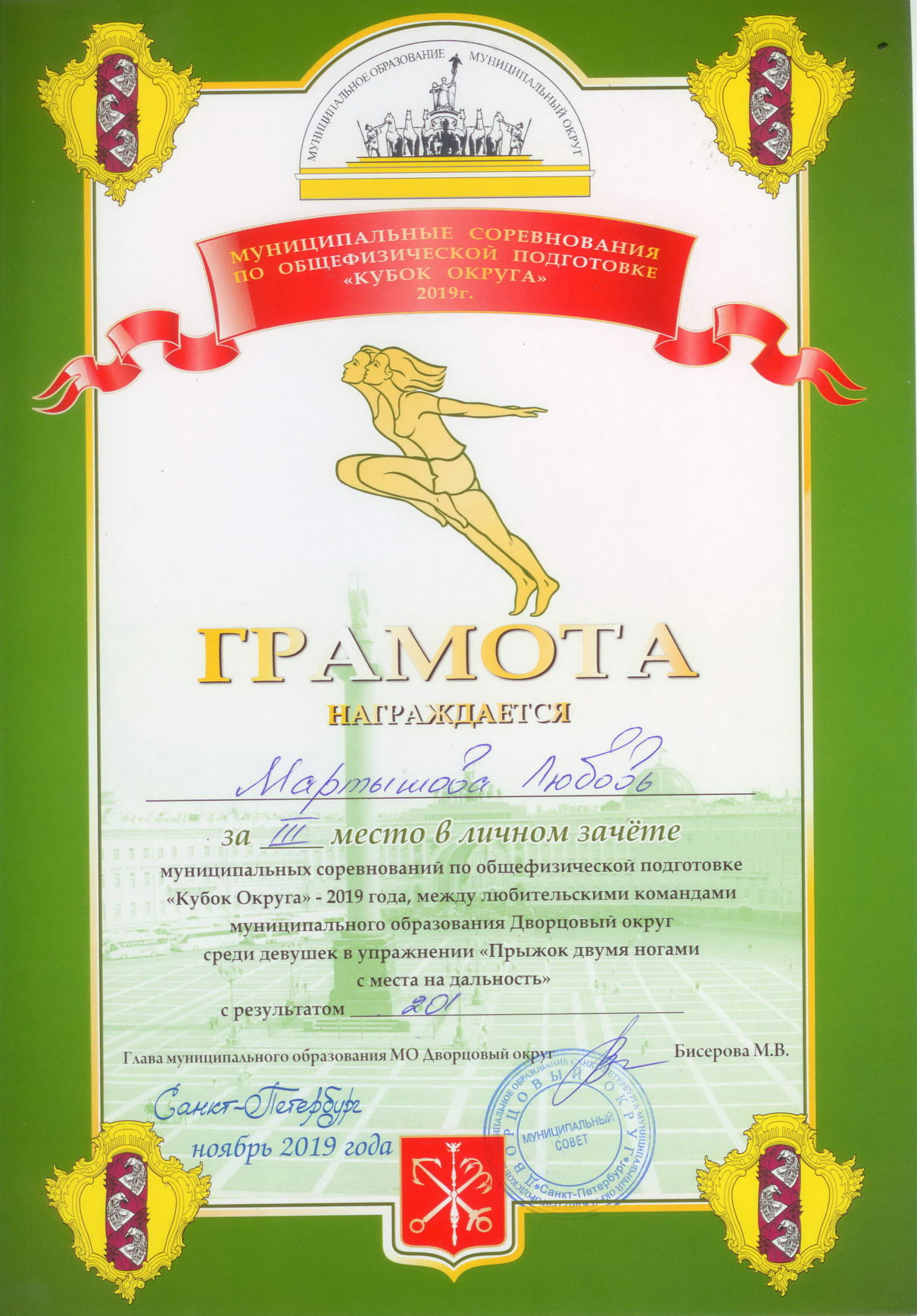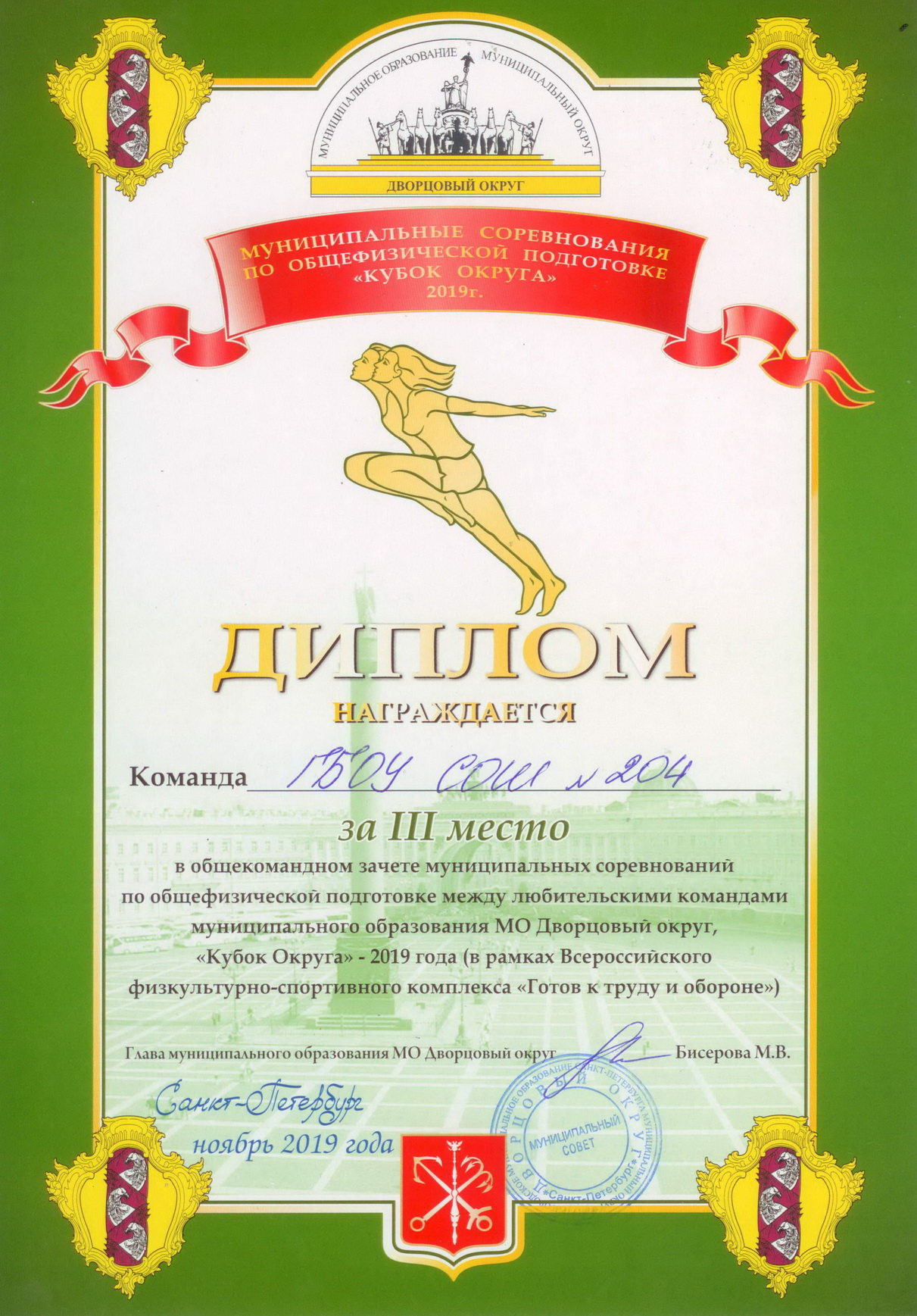 7 ноября состоялись Муниципальные соревнования по ОФП «Кубок округа – 2019», организованные МО Дворцовый округ. 9 спортсменов нашей школы приняли участие в состязаниях. В общекомандном зачете ребята заняли 3 место.