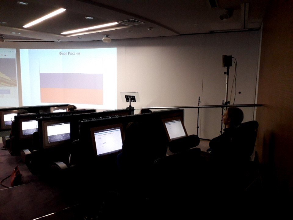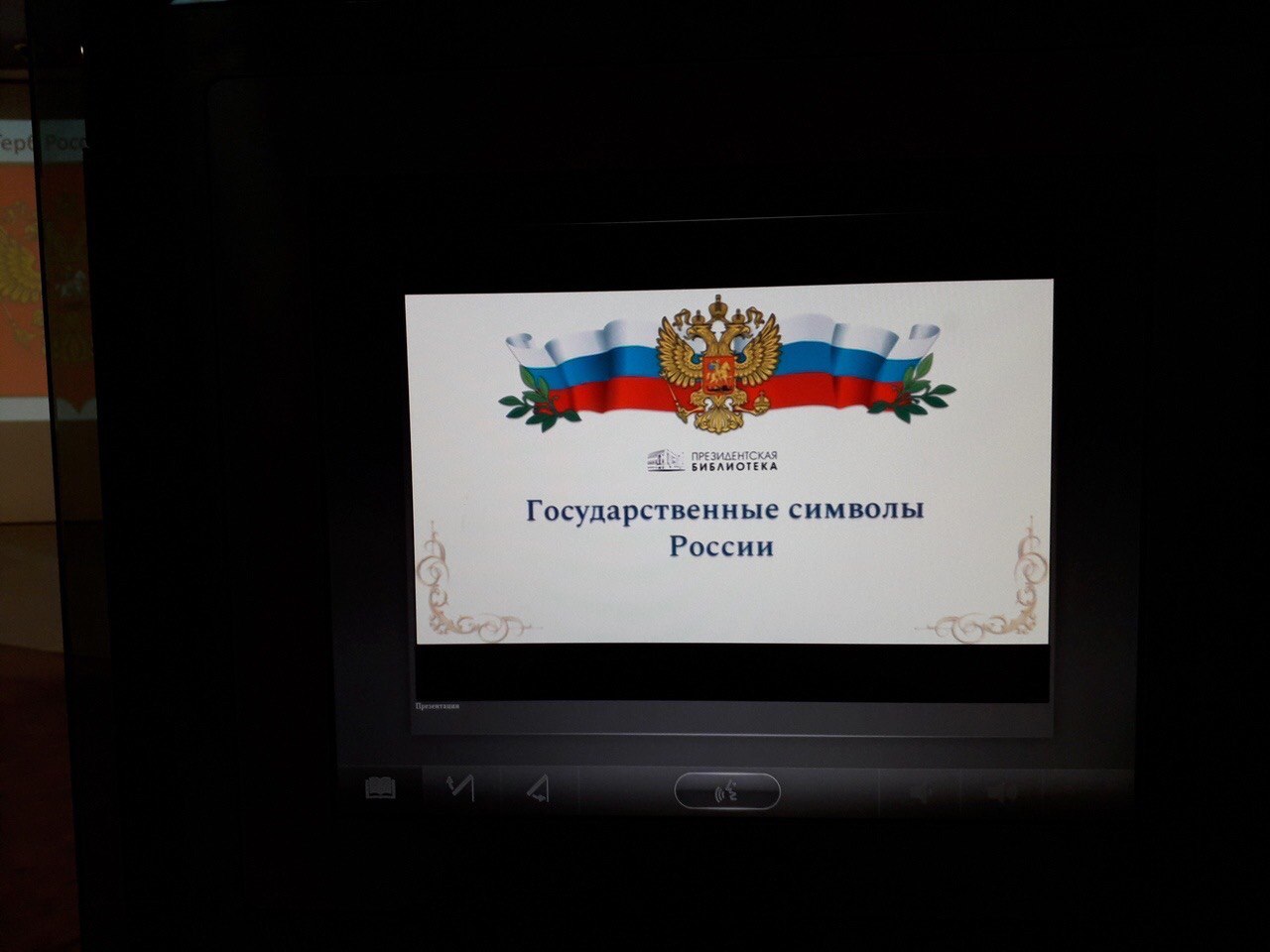 Тема урока - «Государственные символы России». Занятие проходило в лекционном зале, с использованием индивидуальных планшетов.
