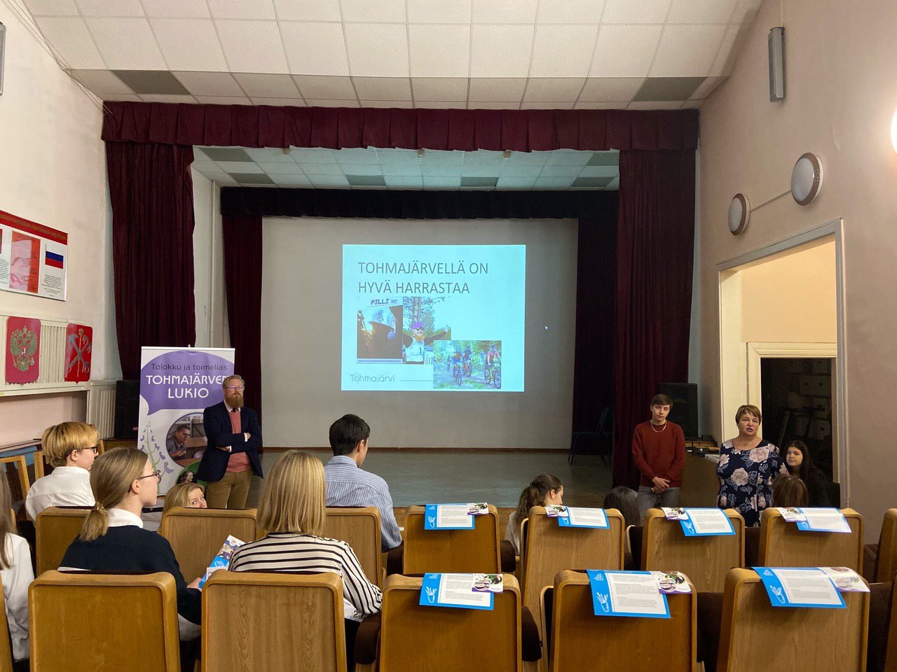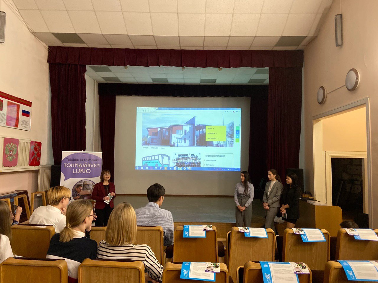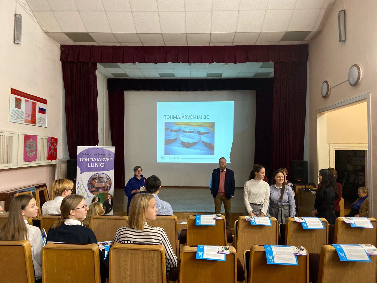 Сегодня 25 ноября прошла презентация финских гимназий Китээ и Тохмаярви. К нам приехали директора, учителя и настоящие студенты! Самые заинтересованные учащиеся и родители нашей школы пришли узнать, как можно поступить в гимназии после 9-го класса, как проходит учёба, из чего состоит учебный план, как можно организовать досуг и устроить быт. После презентации ученики и родители общались и задавали вопросы.