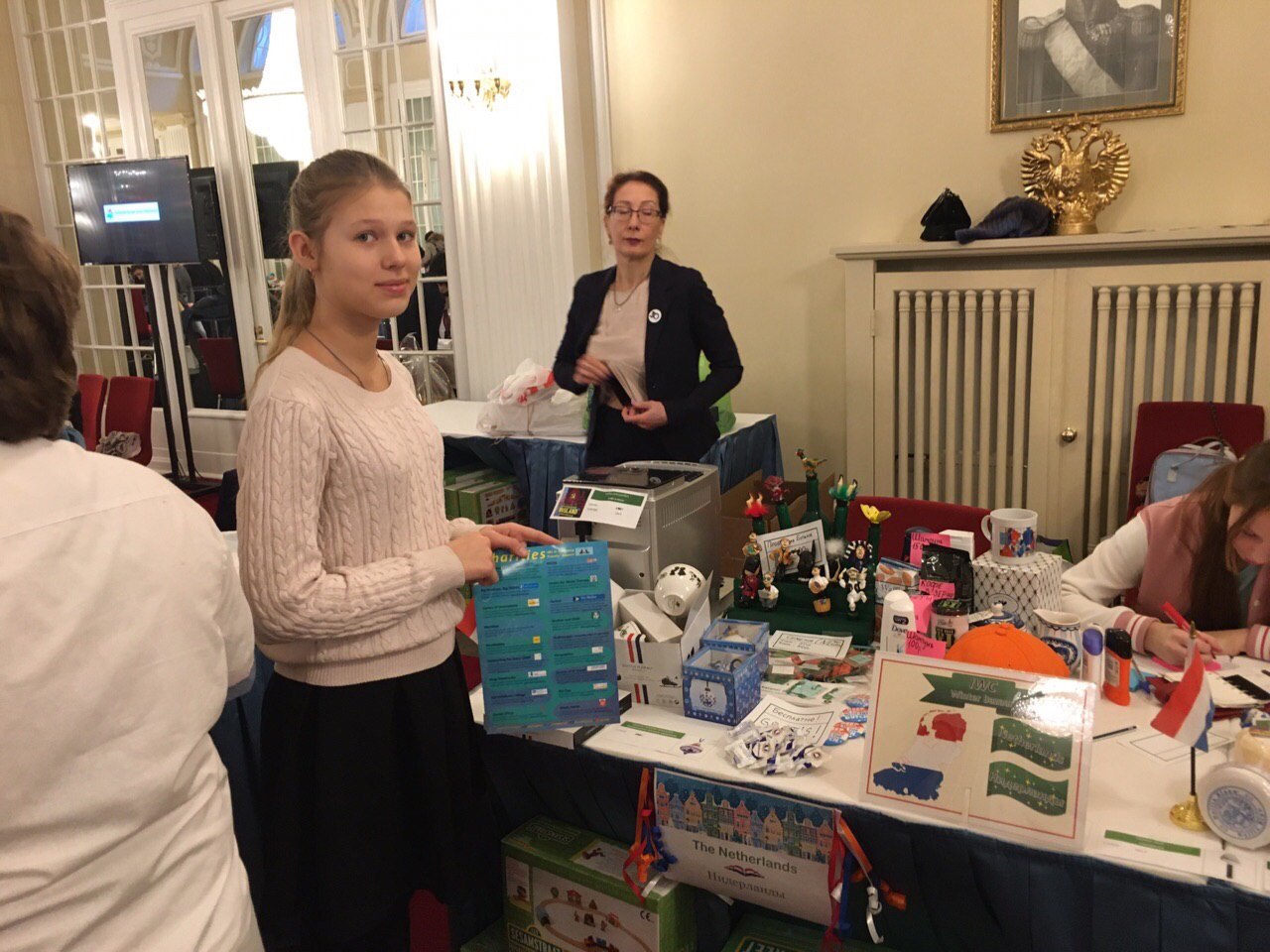 Ярмарку устраивает International Women’s Club (Международный Женский Клуб). Участвует весь дипломатический корпус Санкт-Петербурга: каждое консульство устраивает стенд и продаёт товары своей страны. Наш нидерландский стенд продаёт кофе, вафли с карамелью, семена овощных культур, дельфтский фарфор и, конечно же, сыр.