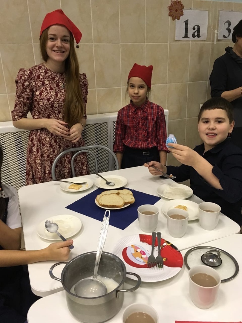 Pikku joulu в нашей школе длится в течение месяца. Ежедневно открывается рождественский Календарь. А сегодня мы по-рождественски завтракали! На первой и второй переменках начальная школа приходит в столовую завтракать. И только один раз в году рисовая каша кажется особенно вкусной!