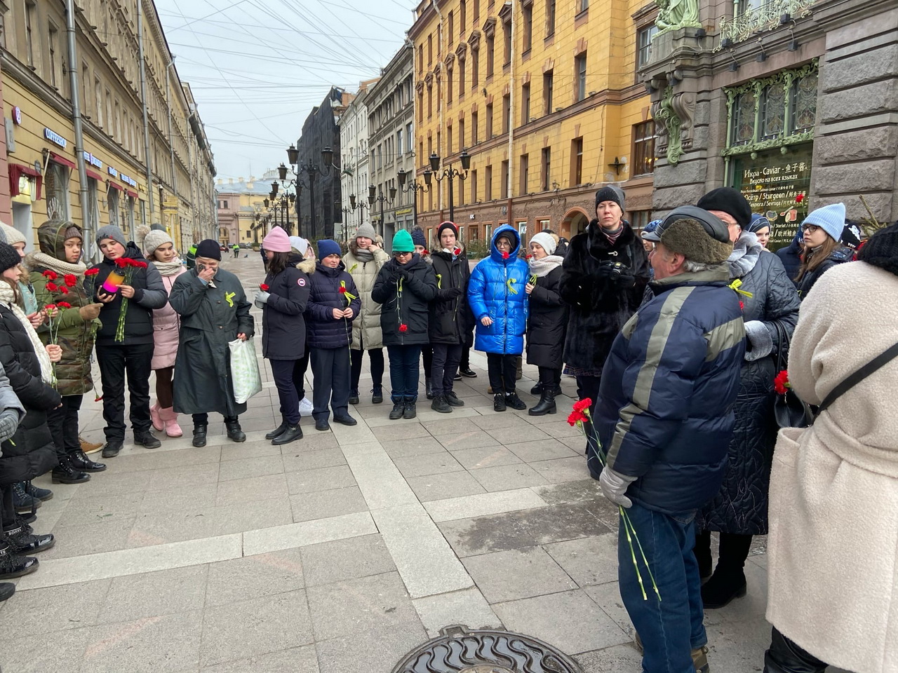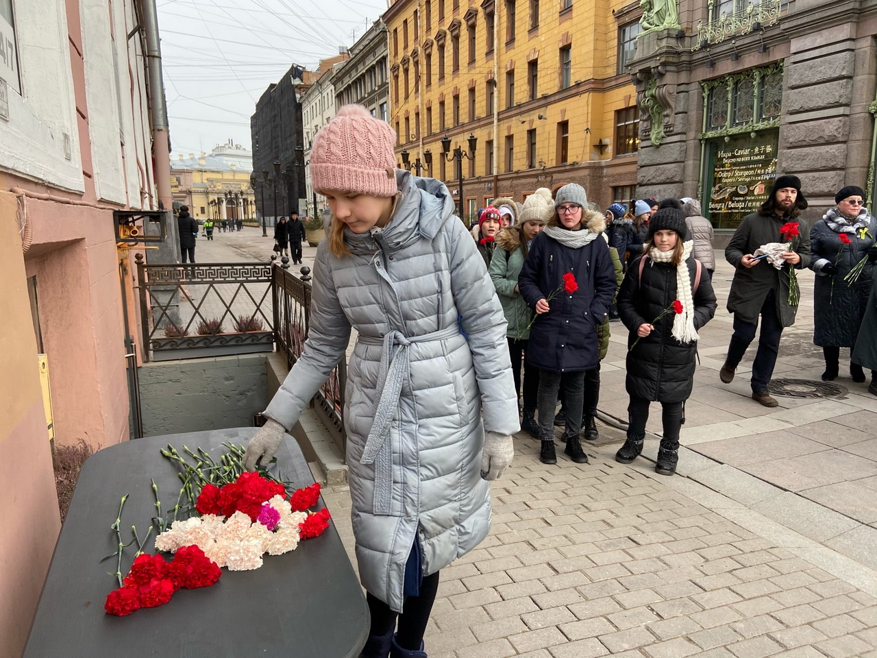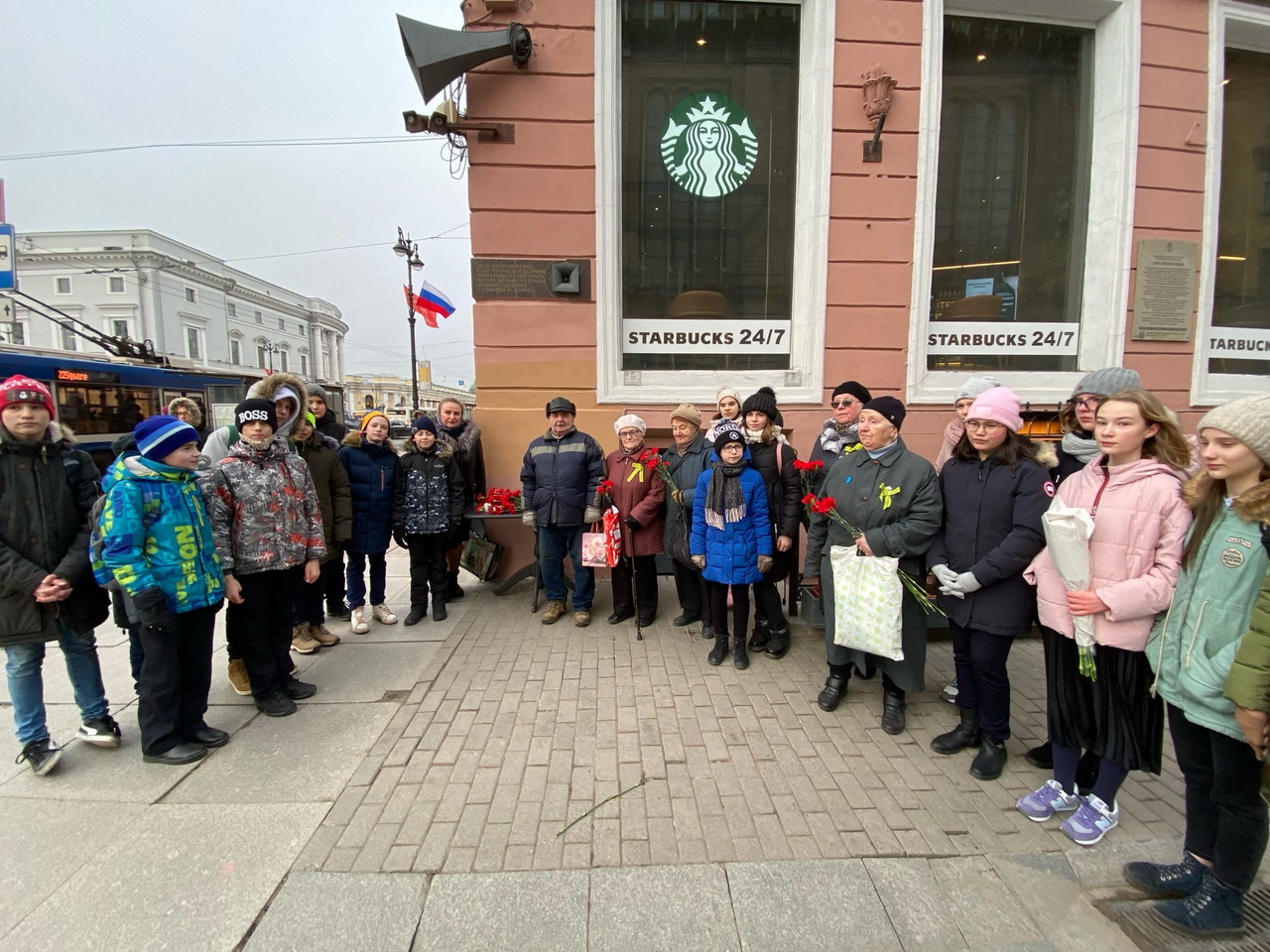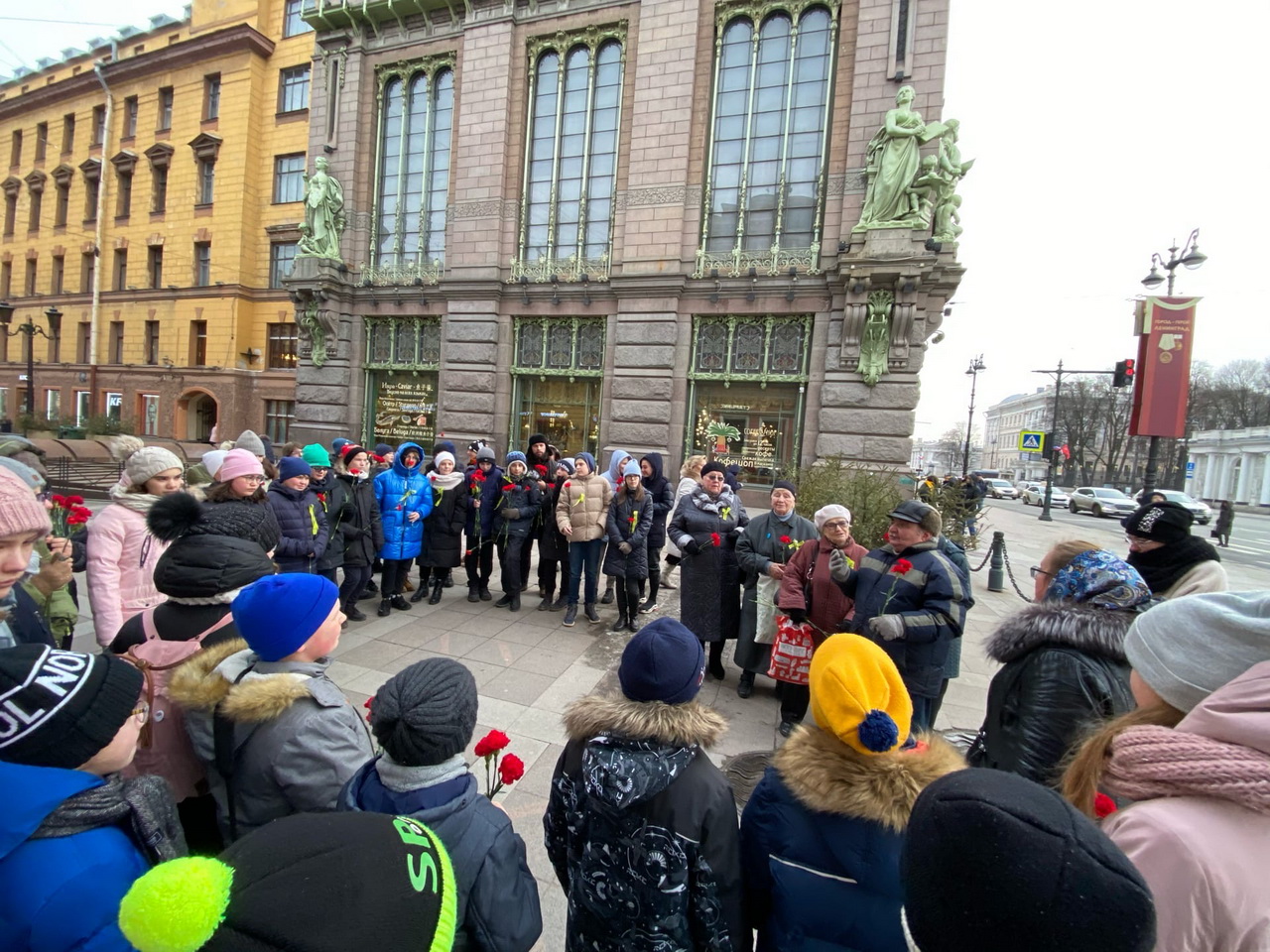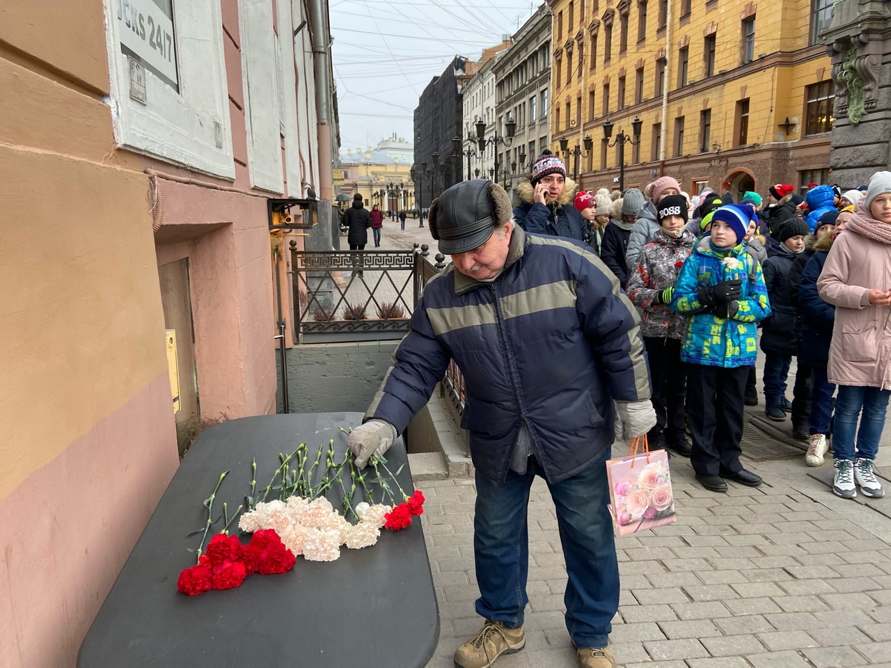В этот день ученики 6 класса возложили цветы у блокадного репродуктора, произнеся важные слова ветеранам блокады.