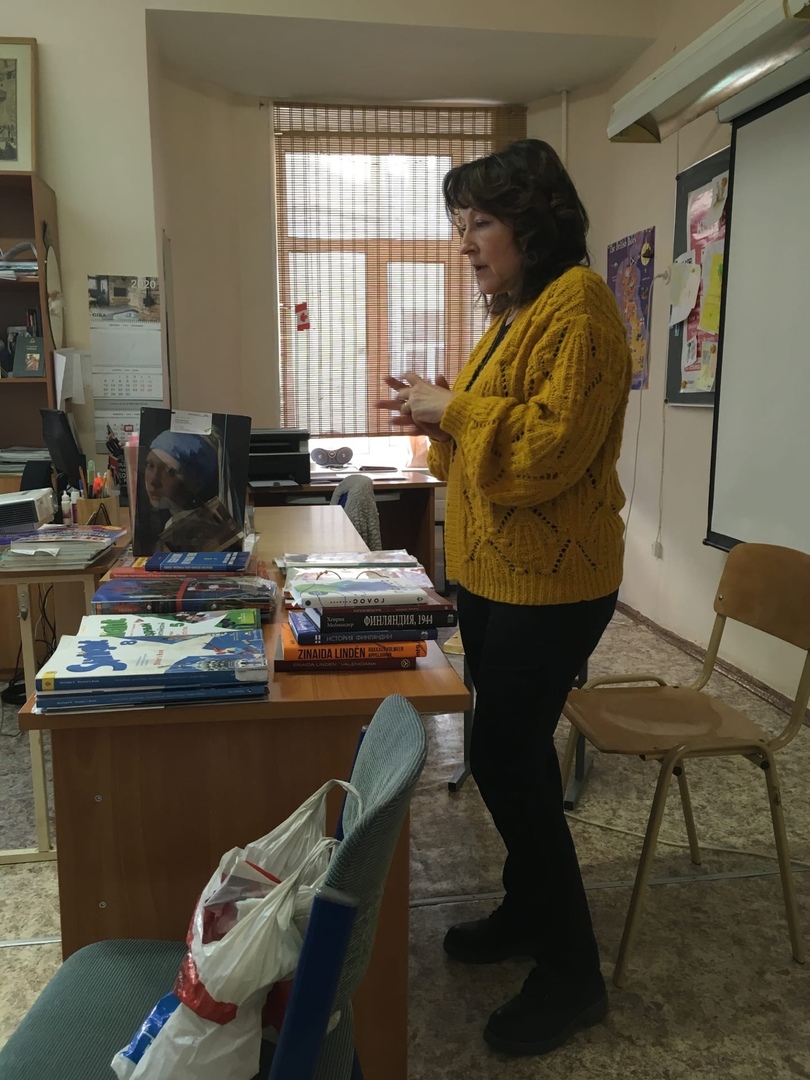 Впервые в гостях в школе побывала сегодня Зинаида Линден, известная писательница из Финляндии. Зинаида Владимировна русская, по образованию филолог-скандинавист. Уже 30 лет живет и работает в Турку. Стала писателем именно там. В 2005 году получила престижную литературную премию Рунеберга. Ведь она пишет по-шведски.