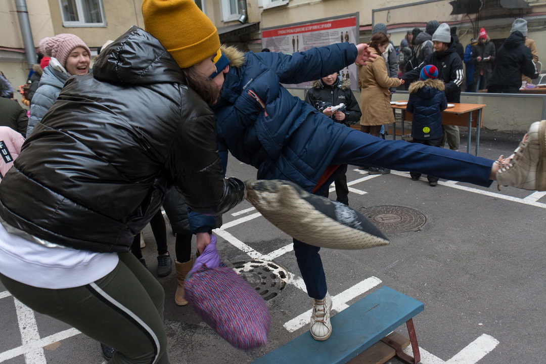 28 февраля педагоги и учащиеся нашей школы провожали Масленицу. Во дворе развернулась веселая ярмарка, в самом центре которой красовалась Масленица. Для детворы были устроены интересные аттракционы и забавы: бег в мешках, катание на шкурах, перетягивание каната, петушиные бои. Ребята играли метлами в хоккей, варили гороховую кашу, сбивали башмаки, играли в снежки. Звучала веселая музыка, дети пили горячий чай и угощались румяными блинами.