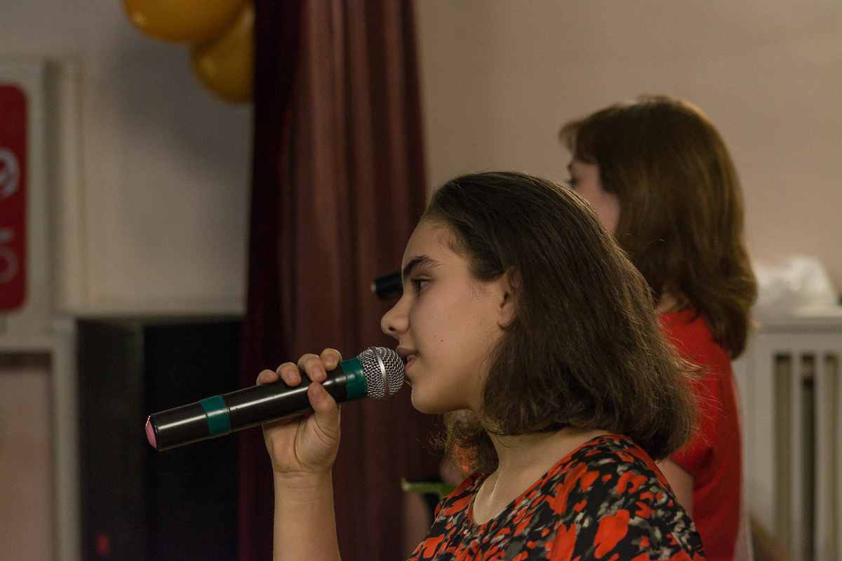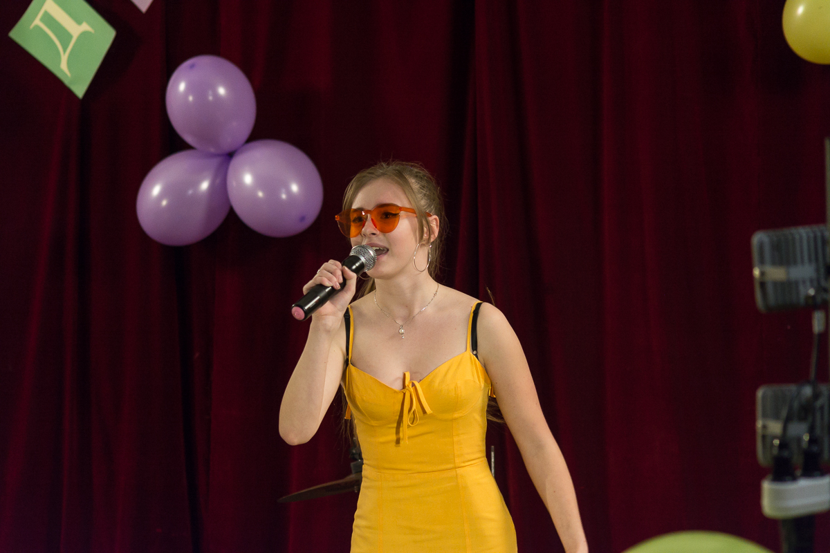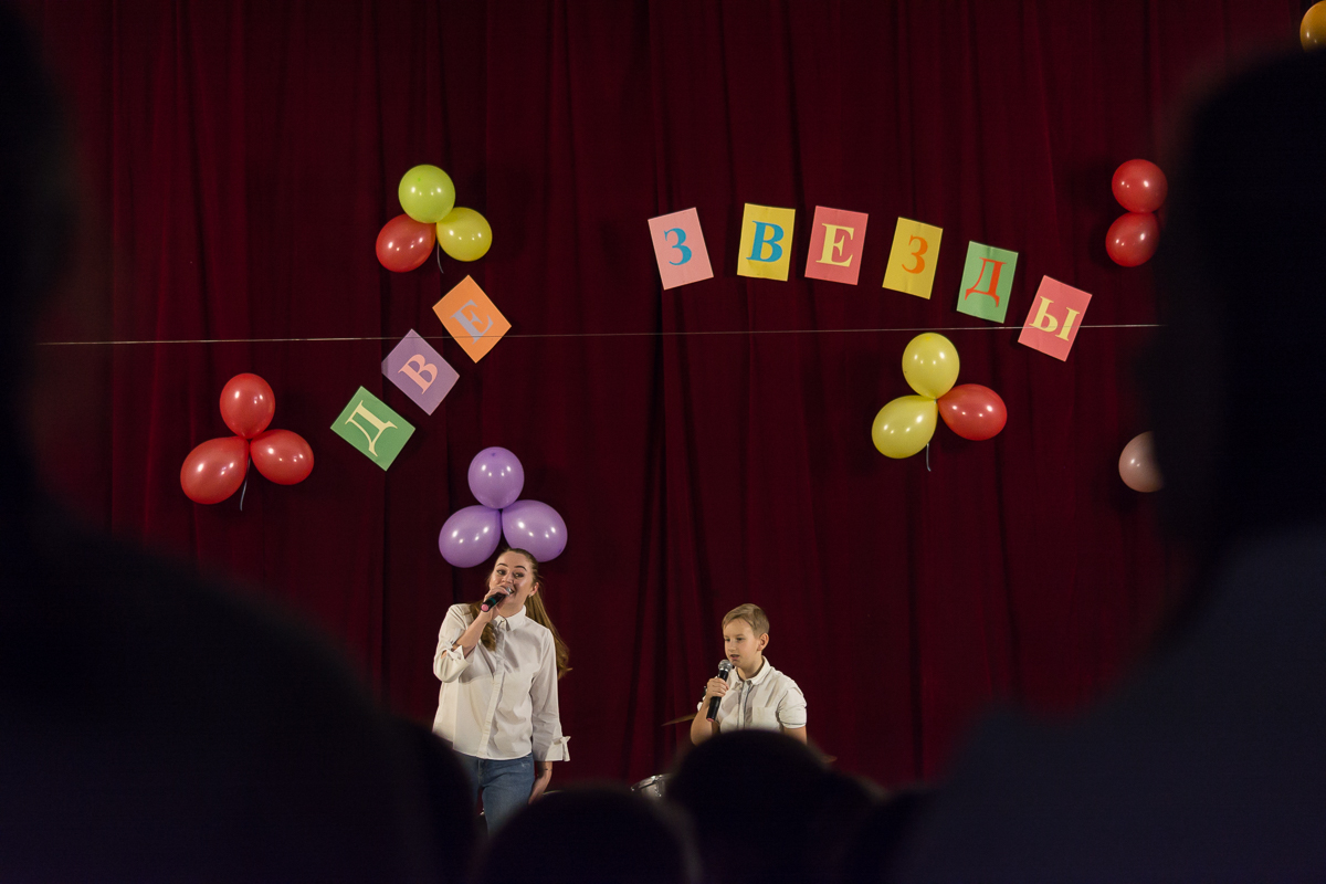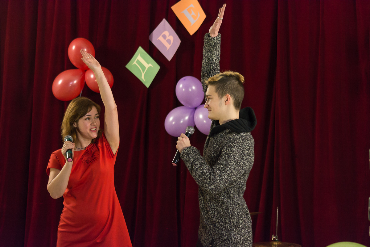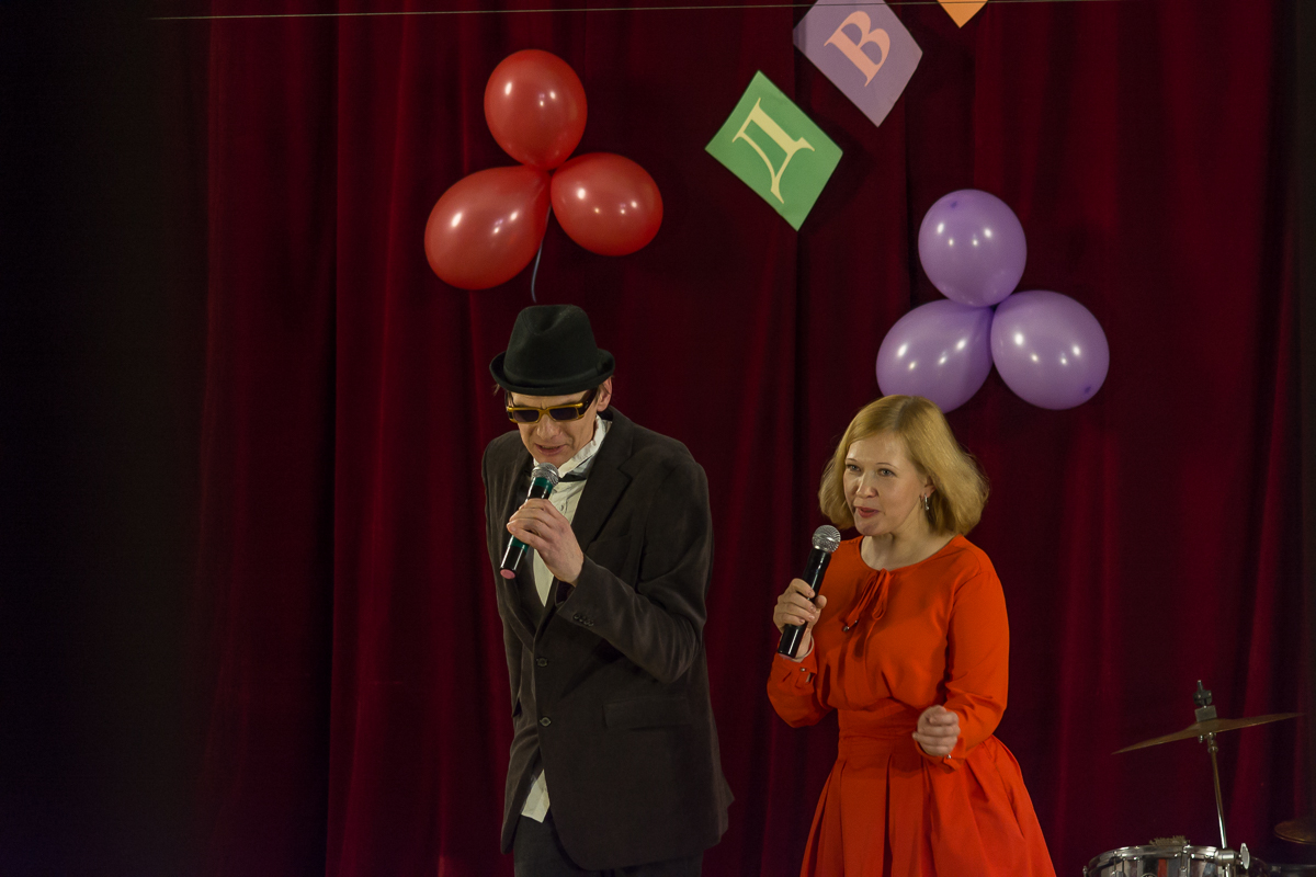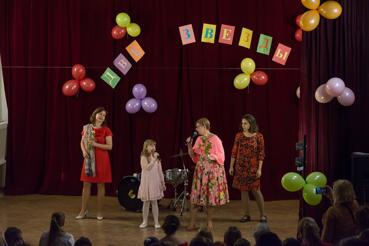 Открыла шоу вокально-инструментальная группа учащихся 8 и 11 классов, солировала Мария Викторовна Яценко. Песню о дружбе душевно исполнили Наталья Николаевна Тетерина и ученик 6А класса Ярослав Кудрявцев, а ученицы 4А класса Арина Кулаченко с Кирой Легениной с оранжевым настроением спели «Оранжевую песенку». Лирическая история нежно прозвучала в исполнении Анастасии Викторовны Гришиной и ученицы 2А класса Марфы Черноусовой. Зрители старшего поколения подпевали Татьяне Анатольевне Зайковой и Тамаре Валерьевне Саленко в песне «Мой адрес Советский Союз». Порадовали гостей композицией «Бабушка-погода» семейный дуэт Володи Британа и мамы Анны Владимировны. Исполнением песни «Москва-Нева» покорили зрителей Айна Николаевна Яккола и ученик 10А класса Иван Арпишкин. А Ольга Германовна Вихарева и ученица 8А класса Катя Заика показали зажигательный номер. Их песню на английском языке украсила своим танцем ученица 3Б класса Маша Михеева. Удивительно романтично на двух языках прозвучала известная песня 80–х годов «Миллион алых роз» в исполнении двух дуэтов Ольги Витальевны Миловидовой с ученицей 2Б класса Марленой Лонской-Ленкер и Айны Николаевны Яккола с ученицей 6А класса Василисой Чигинской. Весело и эксцентрично выступили Анна Викторовна Семенько и Александр Олегович Семенов с песней «Кота Базилио и лисы Алисы». Бурными апплодисментами гости праздника приветствовали Дмитрия Геннадьевича Корытникова и ученицу 9А класса Анну Маслову с композицией «Пускай». Уже второй год этот дуэт радует зрителей своими номерами.