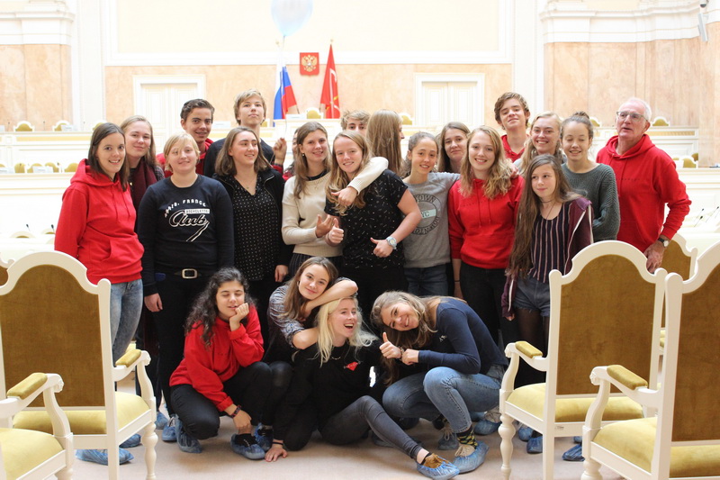 Экскурсия в Законодательное собрание города, организованная для голландской группы родителями наших учеников, произвела на гостей большое впечатление. В ходе экскурсии ребята смогли познакомиться с историей Дворца, увидеть парадные залы, встретиться с представителями парламентских партий, задать острые вопросы. Сувениры от партии ЛДПР были неожиданным, но приятным сюрпризом. Затем все с удовольствием поднялись на Колоннаду Исаакиевского собора, чтобы взглянуть на панорамные виды города. Экскурсия в Эрмитаж завершила программу первого дня. Для знакомства с Эрмитажем у каждого голландского школьника был на руках подготовленный нашими ребятами для данного проекта маршрут, который позволяет самими выбирать залы в зависимости от личных интересов.