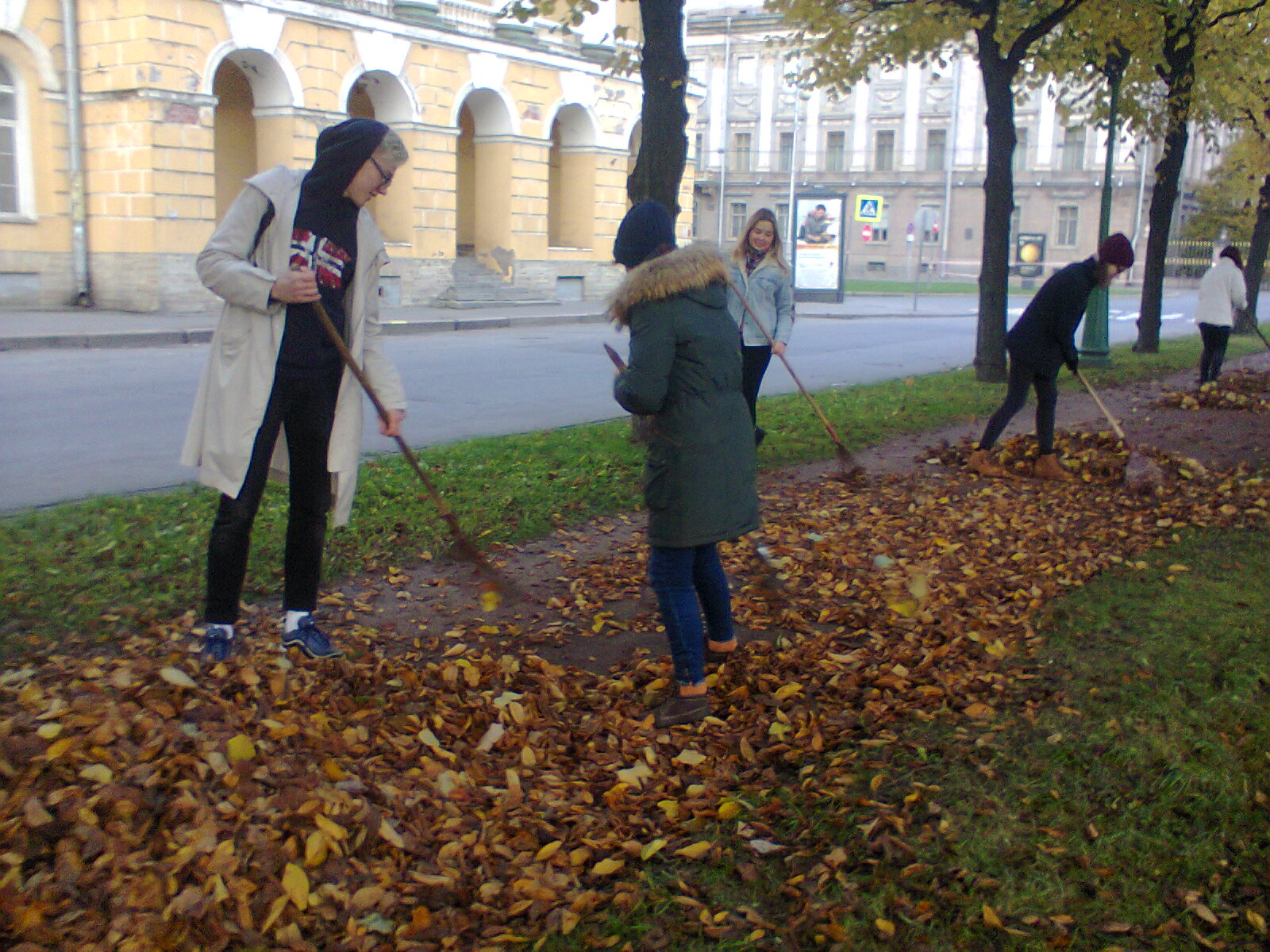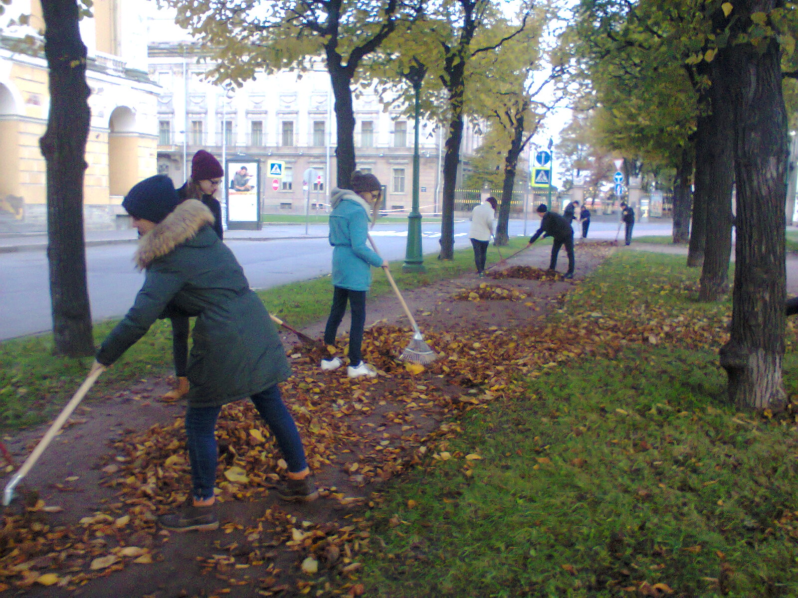 21 октября учащиеся 8 и 10 классов приняли участие в Дне благоустройства нашего города. Ребята активно потрудились на Марсовом поле, они убирали листья и мусор с аллей и газонов.