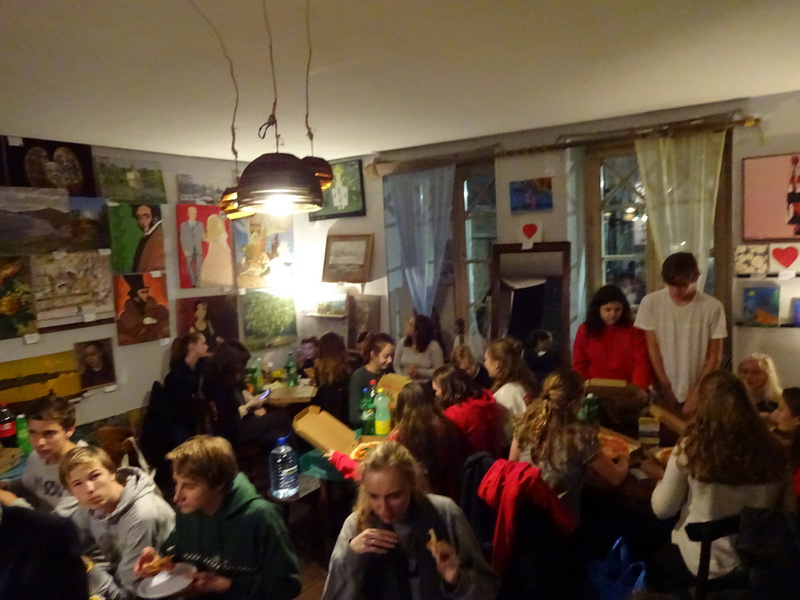 Вечером все участники проекта собрались в Арт-кафе, чтобы обсудить прошедшую неделю, подвести ее итоги, наметить планы на будущее. Было очень приятно видеть всех вместе, рядом, тесным кругом. Осталось ещё несколько незавершённых дел: посетить уроки в начальной школе, взять интервью у учителей и родителей в семьях, купить сувениры. Эти важные моменты были отложены на утро.