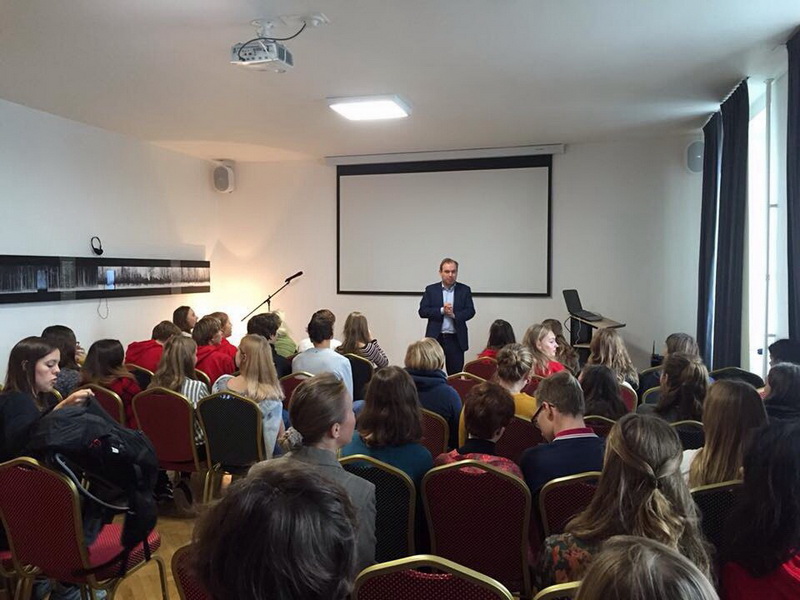 Следующий день был очень важным для всех участников проекта. Генеральный консул Нидерландов каждый год приветствует большую группу в своей резиденции на Английской набережной. В этом году, несмотря на тот факт, что господин Весселинг был в отъезде, нас встречал его первый заместитель господин Хьюго Браувер, который рассказал школьникам об истории голландско-российских отношений и о деятельности консульства. Он подчеркнул в своей приветственной речи, что программа обмена между школами существует уже более 20 лет и дает своим ученикам возможность посетить Россию и Нидерланды, посмотреть на жизнь в другой стране, пообщаться в принимающих семьях. Подобные поездки позволяют школьникам погрузиться в иностранную культуру и, как показывает опыт, приводят к дальнейшему росту их интереса к голландско-российским отношениям. Информация об этой встрече в тот же день была опубликована на официальном сайте Консульства на фейсбуке.