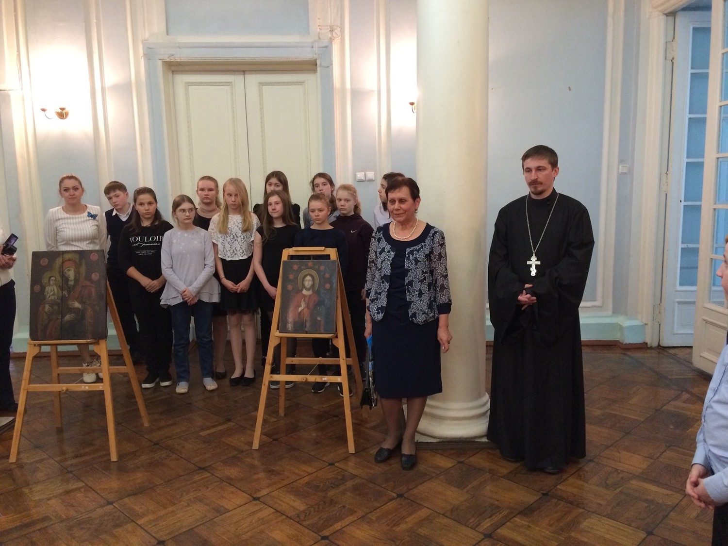 16 апреля 2018 года в ГБОУ школе № 204 Центрального района Санкт-Петербурга состоялась встреча «Образовательное пространство школы и духовно-нравственное воспитание» в рамках торжественного закрытия выставки «Иконы: Россия – Финляндия». Почетных гостей поприветствовала директор школы Светлана Вячеславовна Петрова. Подробнее о выставке икон в арт-пространстве школы рассказала заместитель директора по ОЭР Ольга Витальевна Миловидова, координатор проекта «Арт-пространство школы». Почетные гости, иерей Сергий (Потёмкин), священник храма Спаса Нерукотворного Образа на Конюшенной площади, методист ИМЦ Центрального района Светлана Борисовна Вечер, Ольга Анатольевна Забелина (вдова художника Вячеслава Забелина), осмотрели экспозицию и послушали Пасхальные песнопения школьного хора.