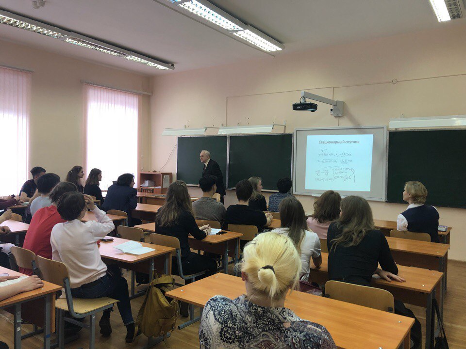 16 апреля ГБОУ школу № 204 посетил профессор кафедры теоретической и прикладной механики Математико-механического факультета Санкт- Петербургского государственного университета, доктор физико-математических наук Михаила Петровича Юшкова. Он побеседовал с учащимися нашей школы о космической гонке СССР и США в области освоения космоса между СССР и США в период с1957 по 1975 годы.
