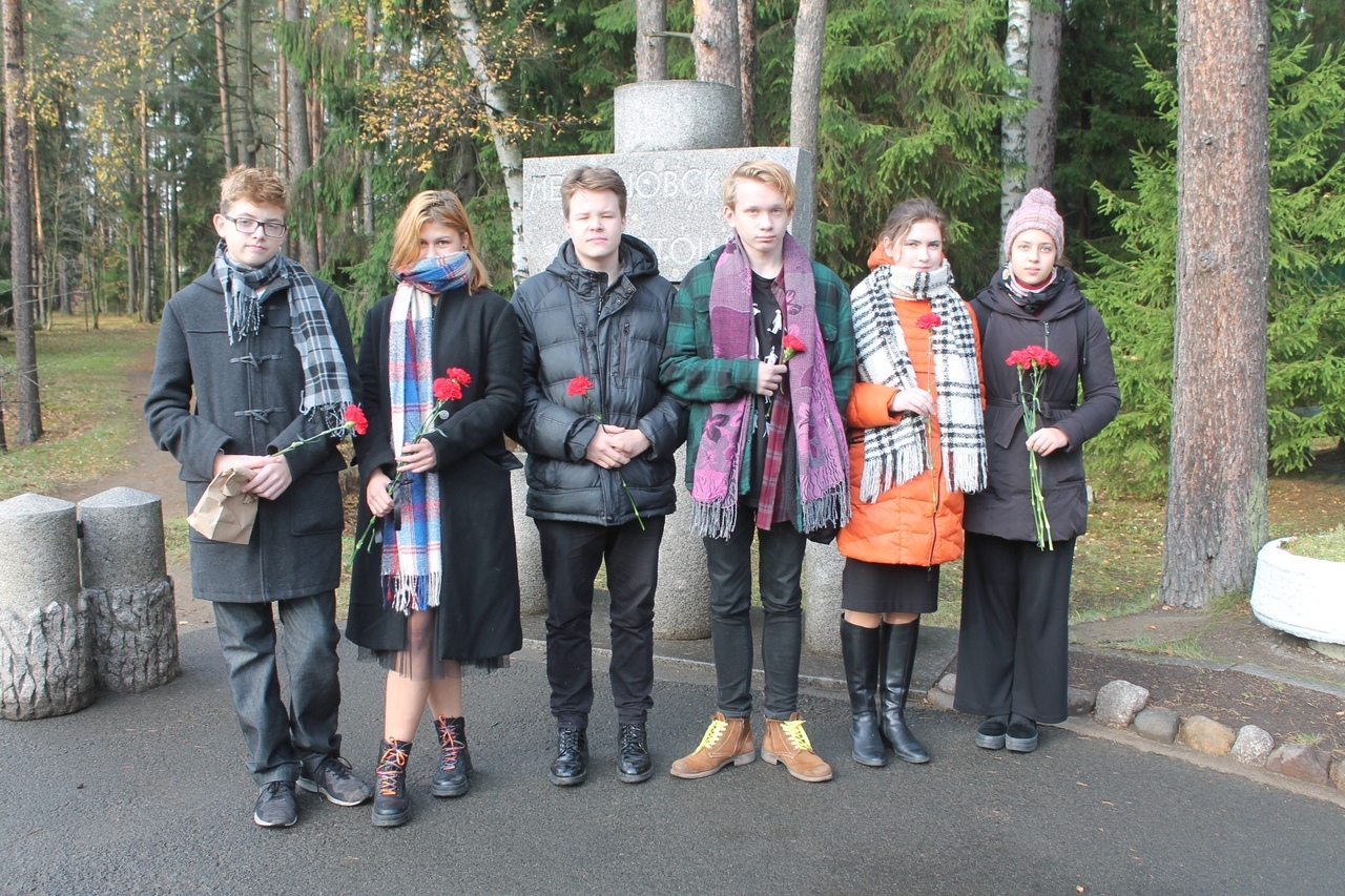 Ребята отправились в Левашовскую пустошь, где посетили музей, возложили цветы к мемориалу и зажгли "свечу памяти"