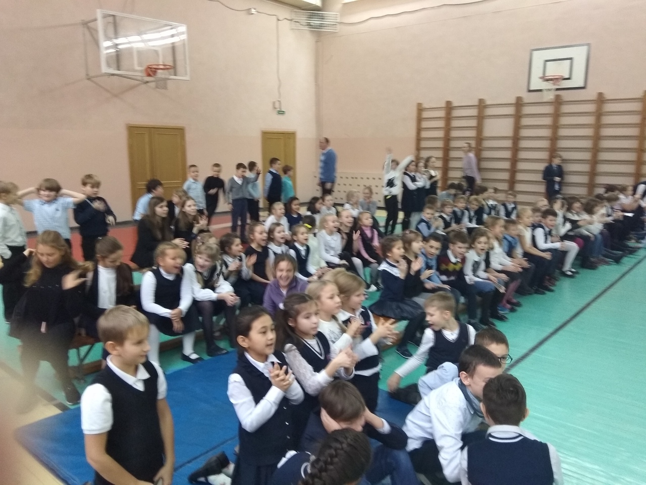 Учащиеся школы смогли увидеть выступления чемпионов России, Северо-Западного и Центрального округов по художественной гимнастике и спортивной аэробике. На выступление были приглашены самые маленькие наши зрители, 1-4 классы, а также воспитанники детского сада № 109.
