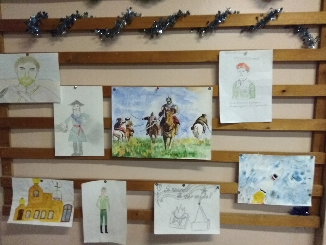 7 декабря в школе организована выставка рисунков на тему "Герои Отечества"