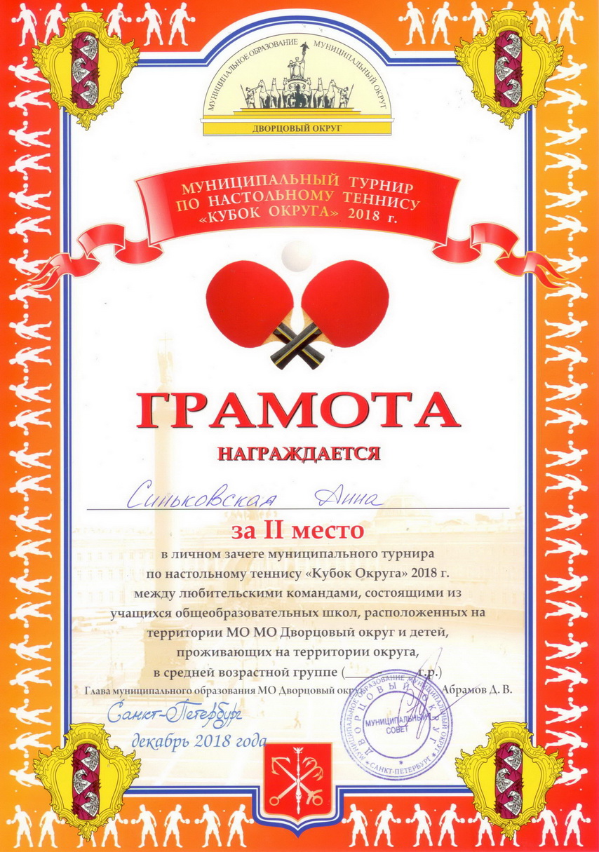 12-13 декабря состоялись Муниципальные соревнования по настольному теннису «Кубок округа – 2018», организованные МО Дворцовый округ.