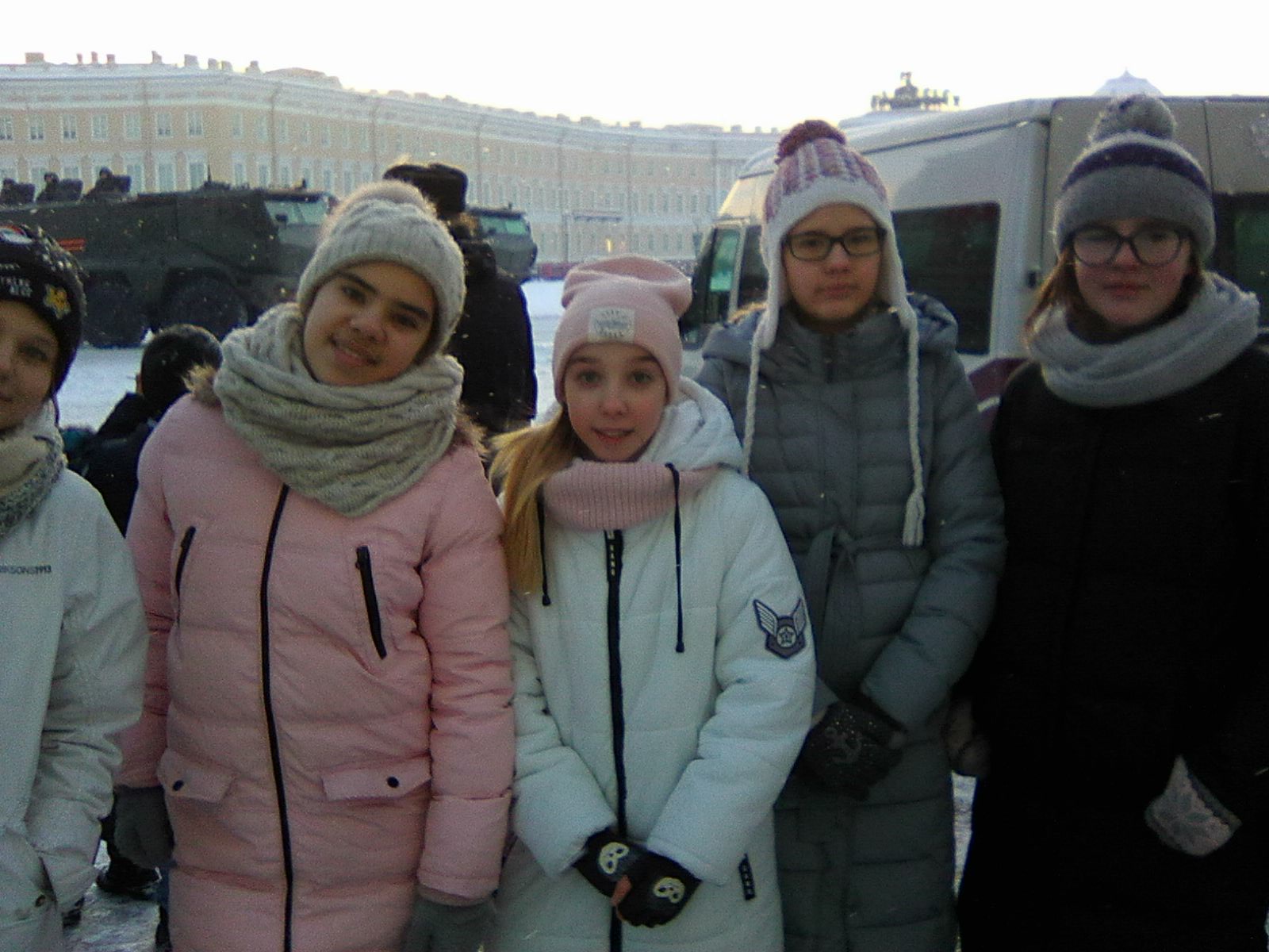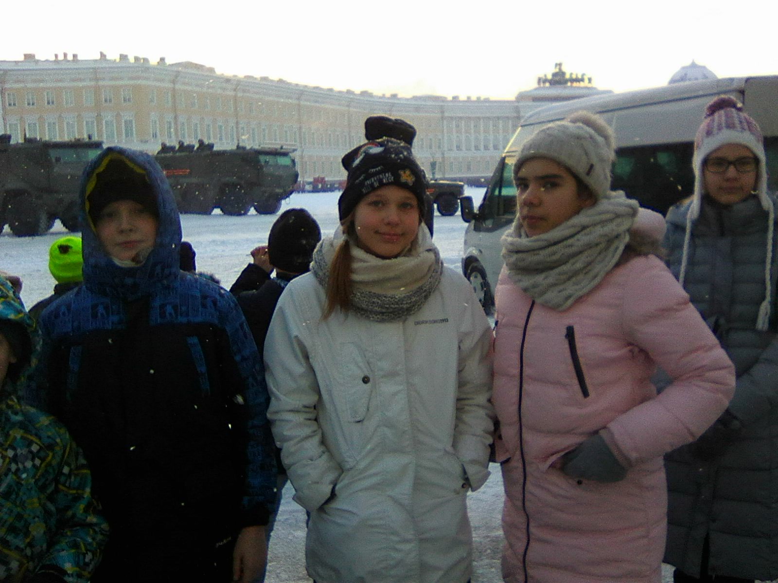 24 января на Дворцовой площади проходила генеральная репетиция парада, посвященного 75 годовщине снятия блокады Ленинграда. Учащиеся 5 класса посмотрели парад военной техники. Парад открывал знаменитый танк Т-34. Ребята увидели бронетранспортеры, зенитные ракетные системы С – 400, новейшие танки Т-72, ракетные комплексы «Искандер М».