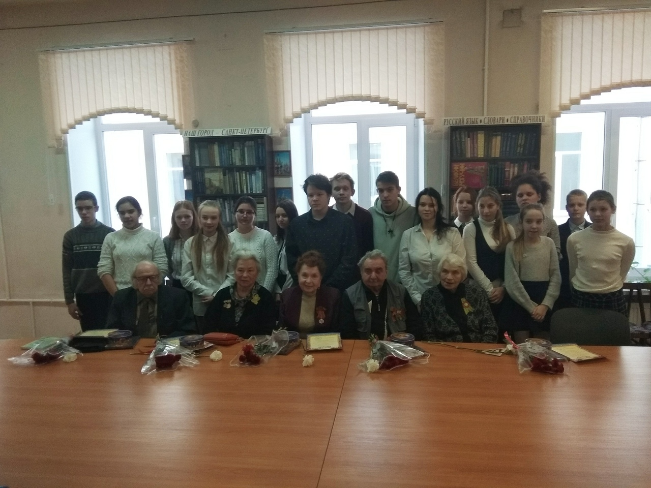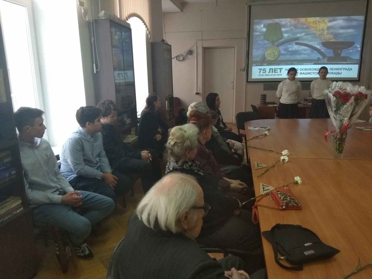 К нам в гости пришли ветераны, рассказали о жизни в блокадном Ленинграде. Дети из детского сада №109 поздравили ветеранов, прочитали стихи. Ребята школы показали документальный фильм, прочитали стихи собственного сочинения, задали свои вопросы.