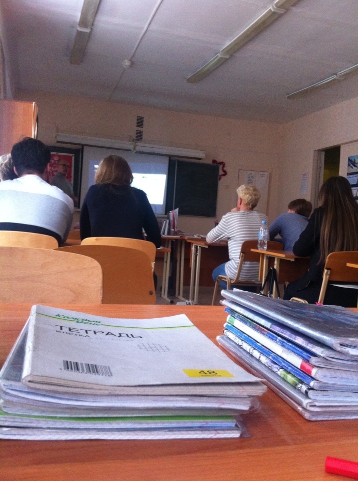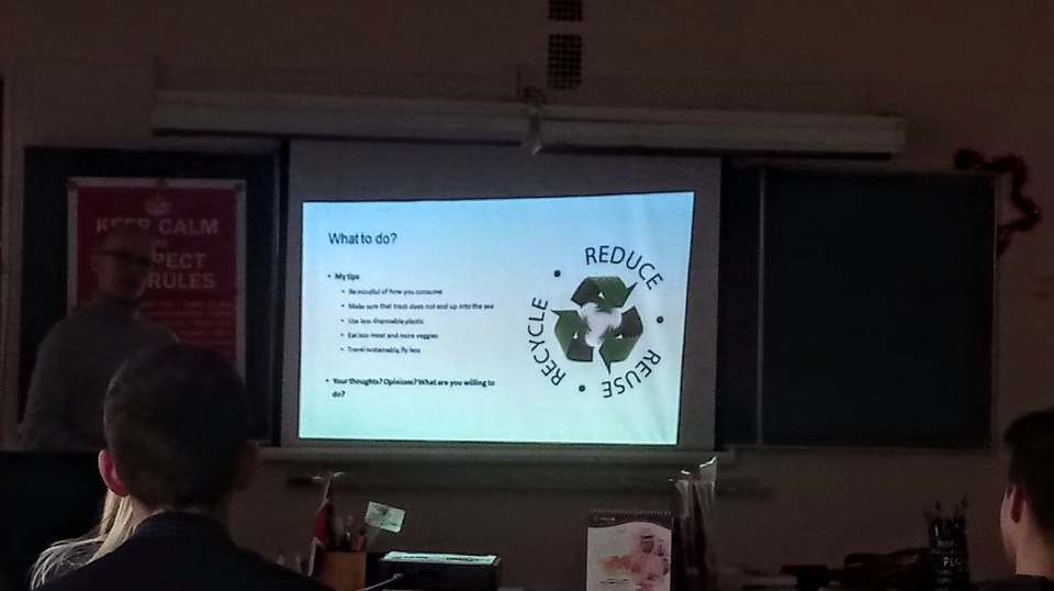 Для встречи со старшими школьниками Алексис выбрал тему «Киты в Арктике». Беседа проходила интерактивно: вопрос-ответ-пояснение.Даже учителя, присутствовавшие на уроках, сделали очень много открытий.Самый повторяющийся вопрос, который задавали ученики в конце уроков, был таким:«Have you ever seen a whale?» К сожалению, Алексис не видел кита своими глазами, но его презентация и рассказ были такими убедительными, что все решили, что перед нами специалист-биолог.