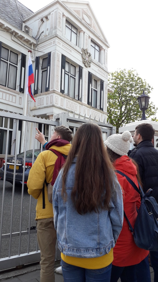 16 апреля 2019 российские участники международного образовательного проекта "Мы живем и учимся в Санкт-Петербурге и Гааге в XXI веке" были приглашены в Посольство Российской Федерации. Принимающей стороне мы кратко рассказали о том, что в этом году проект отмечает юбилей - 25-летие российско-голландского сотрудничества. Основными задачами его деятельности являются знакомство с национальной культурой, историей, образованием, особенностями менталитета. В Посольстве произошёл очень продуктивный диалог о современных мировых проблемах, о жизни русской диаспоры в Нидерландах, о дальнейших планах школ-участниц проекта.