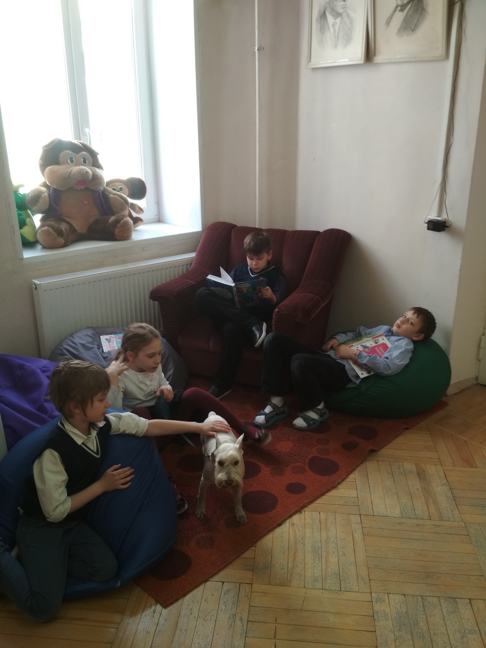 На этой неделе в нашу школу приезжали финские школьники из города Тампере, Финляндия. У них в школы тоже приходят в гости собаки, и дети читают им вслух. Сегодня с собачкой встречались учащиеся 1А класса. В этот раз наши дети читали собачке стихи Агнии Барто. Все дети замечательные и уже хорошо читают. Кроме чтения вслух они в школе посетили выступление театральной студии.