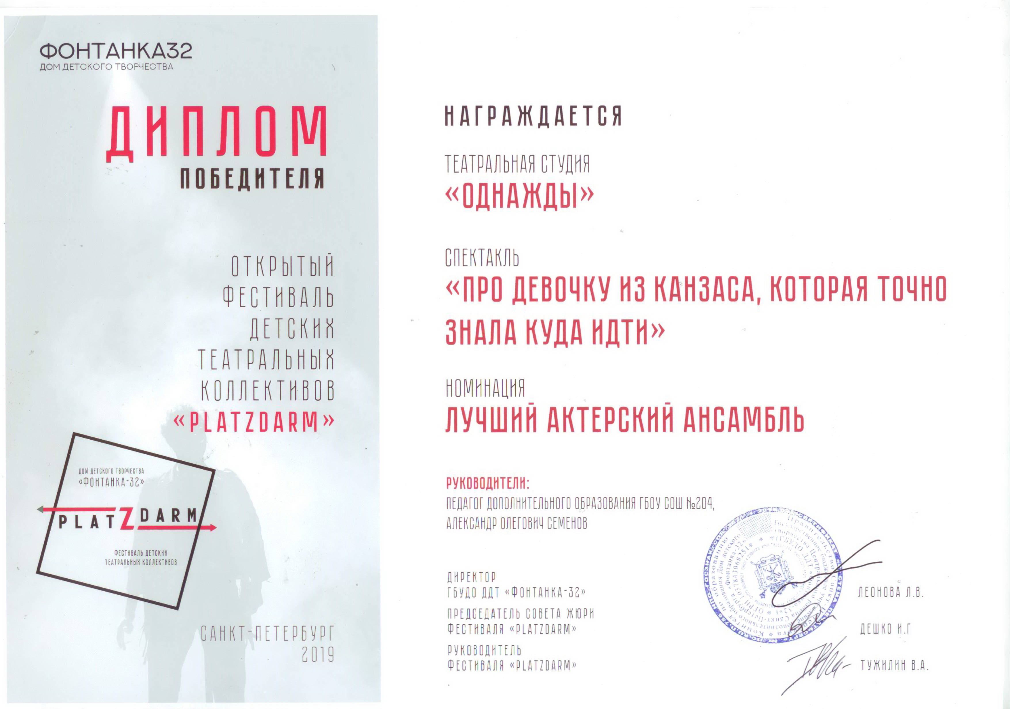 Наша школа на фестивале представляла работу театральной студии «Однажды» - спектакль «Про девочку из Канзаса, которая точно знала куда идти», режиссер Александр Олегович Семенов.