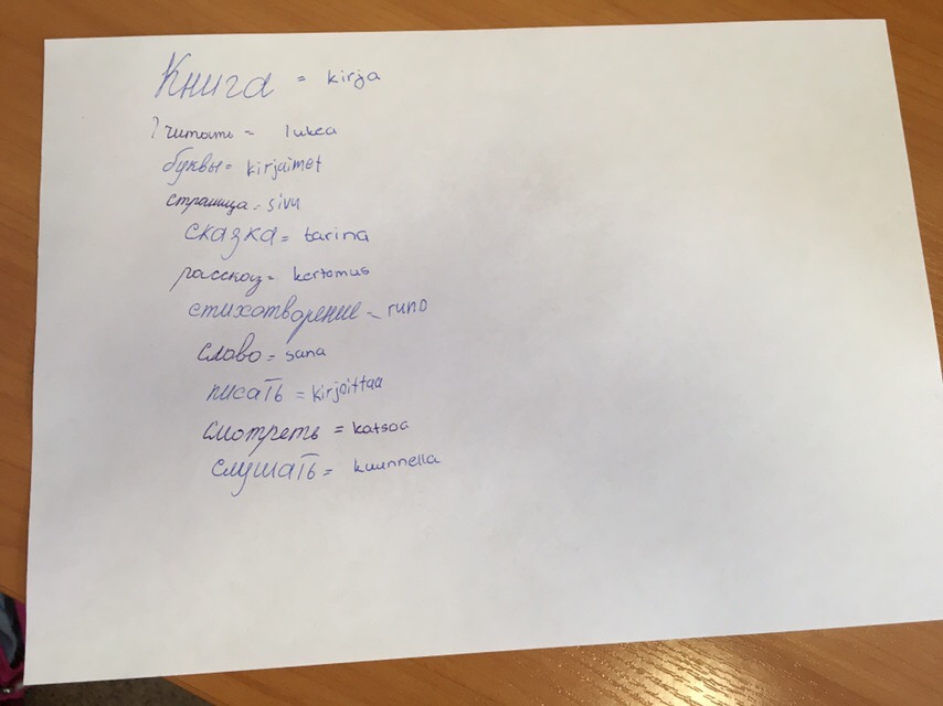 А во втором классе было ещё интереснее. Познакомившись, все разбились на группы по интересам: музыка, футбол, конный спорт, плавание, чтение, рисование. Нужно было написать финнам по-фински, а русским по-русски по пять слов, относящихся к теме. А дальше понять значение этих слов с помощью рисунков, жестов, иногда только прибегнуть к помощи преподавателя!