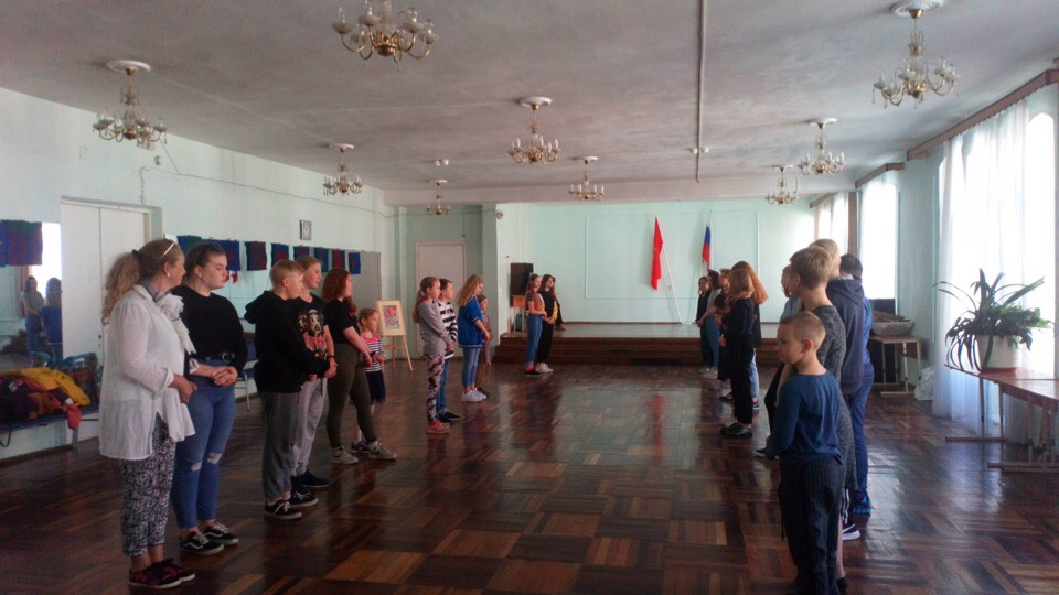 Затем в Зеркальном зале все танцевали и учились доверять друг другу, произносить русские слова и трудные звуки!