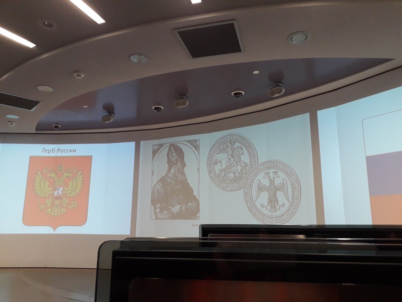 Тема урока - «Государственные символы России». Занятие проходило в лекционном зале, с использованием индивидуальных планшетов.